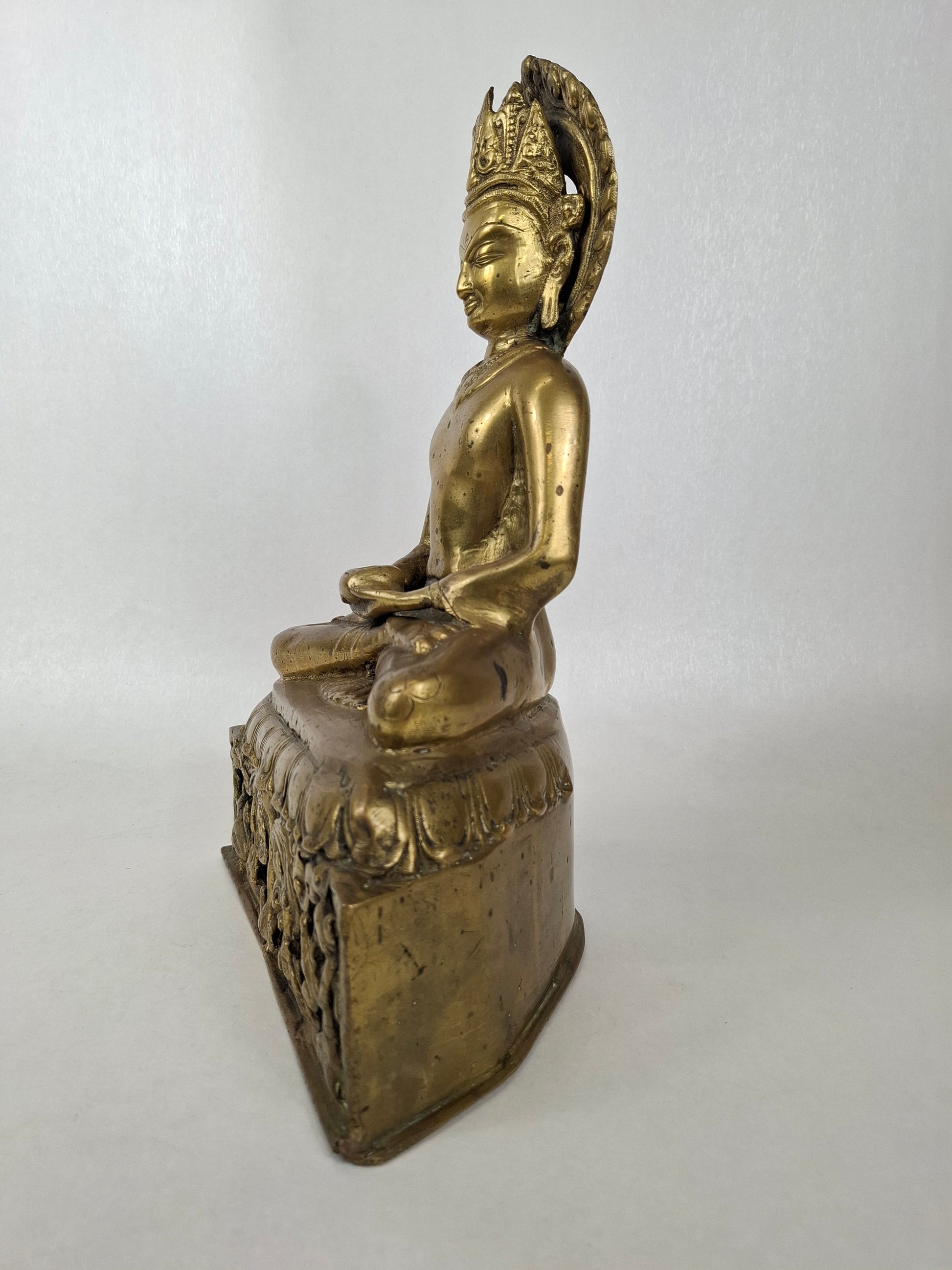 Large vintage Chinese sitting buddha in meditation posture // Brass - 20th century