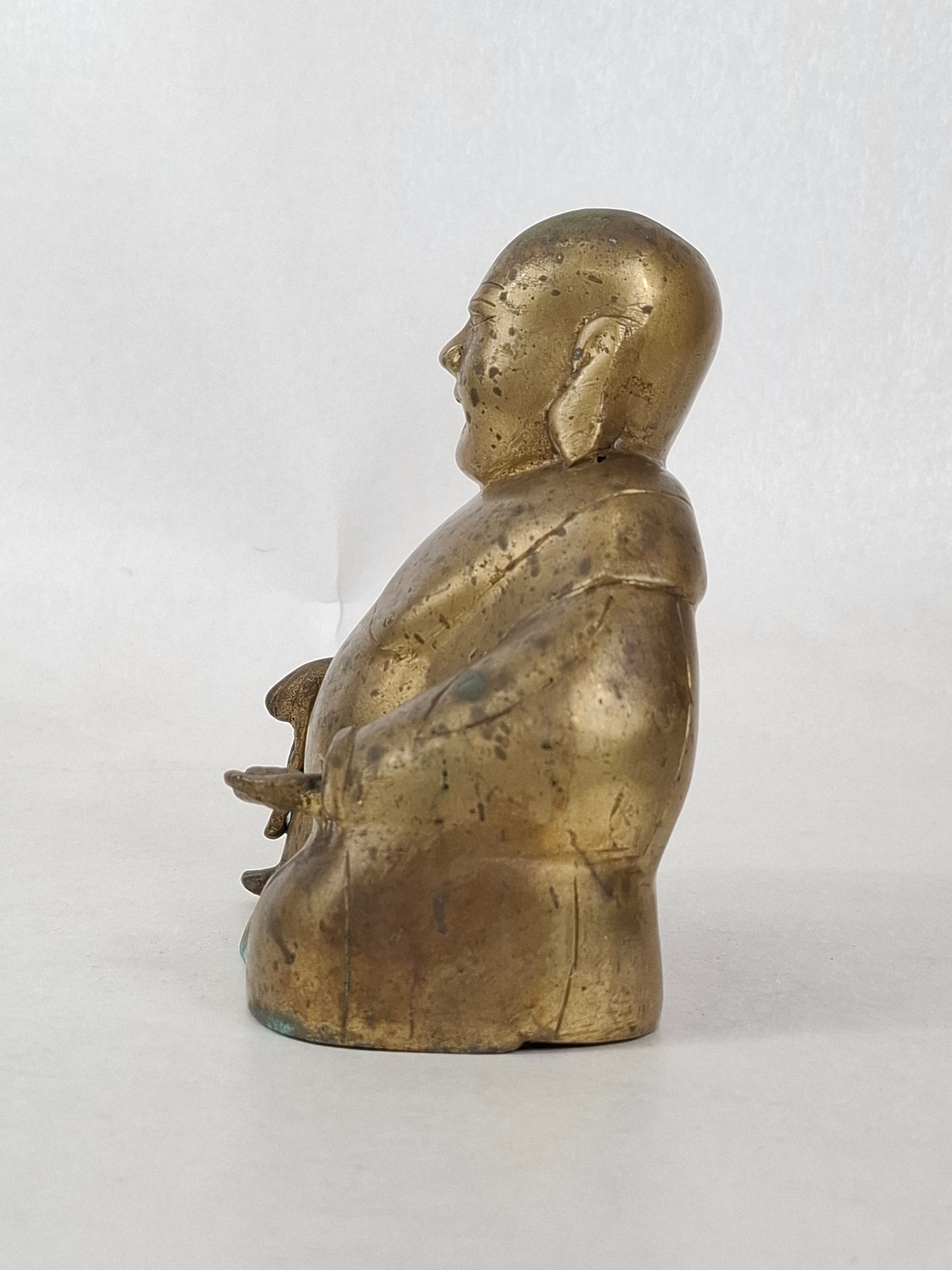 A vintage bronze gilded buddha in a sitting position. The buddha is made in China and dates from the middle of the 20th century (1950s-1960s).