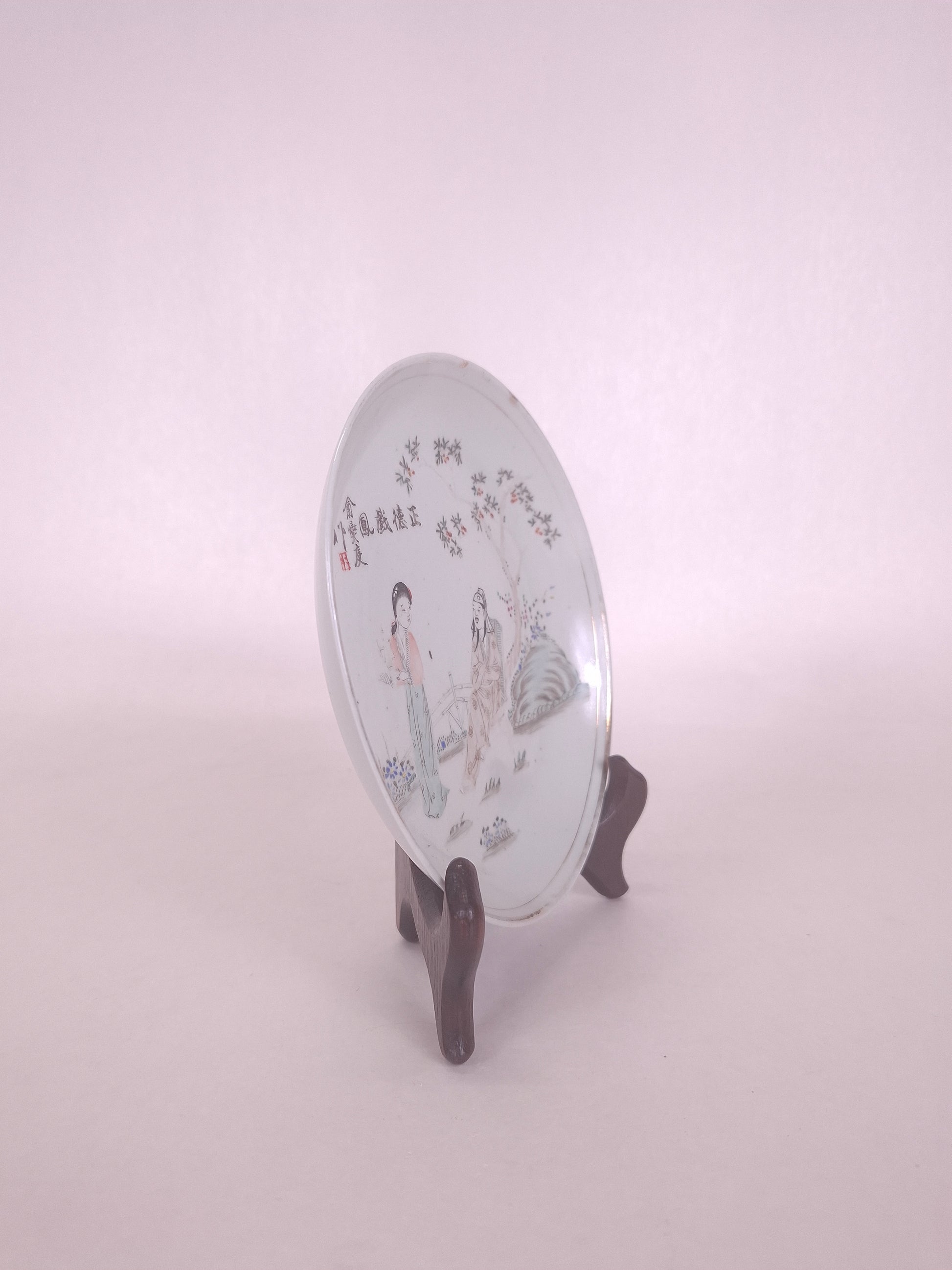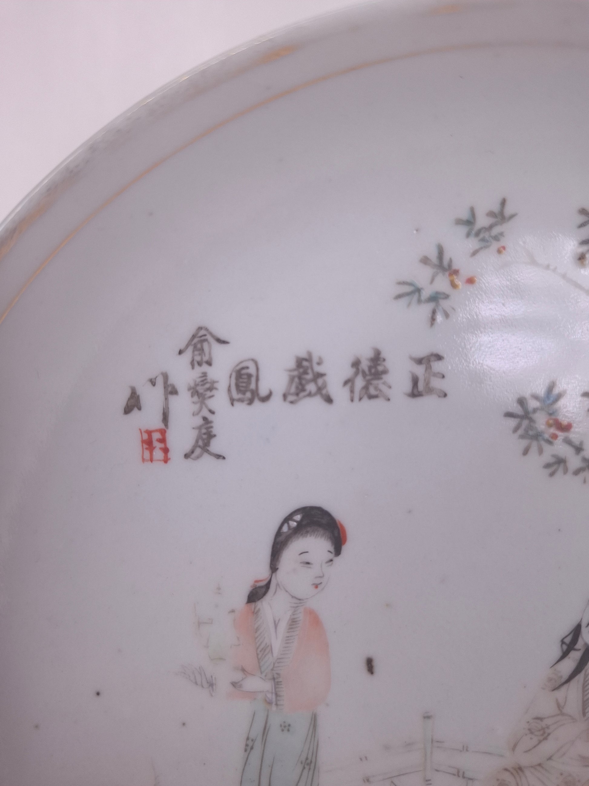 Assiette chinoise ancienne décorée d'un sage et d'une dame chinoise // Période républicaine (1912-1949)