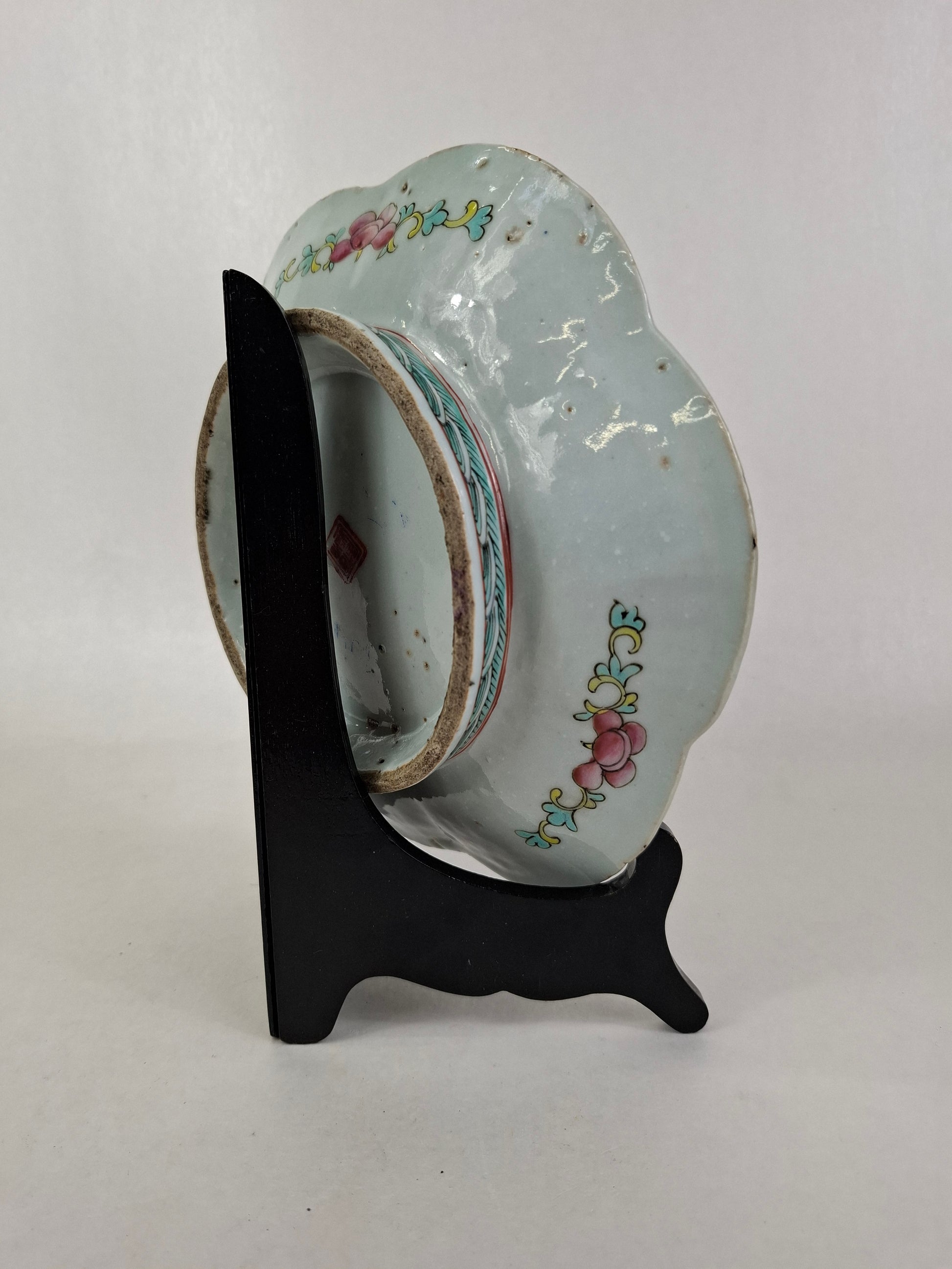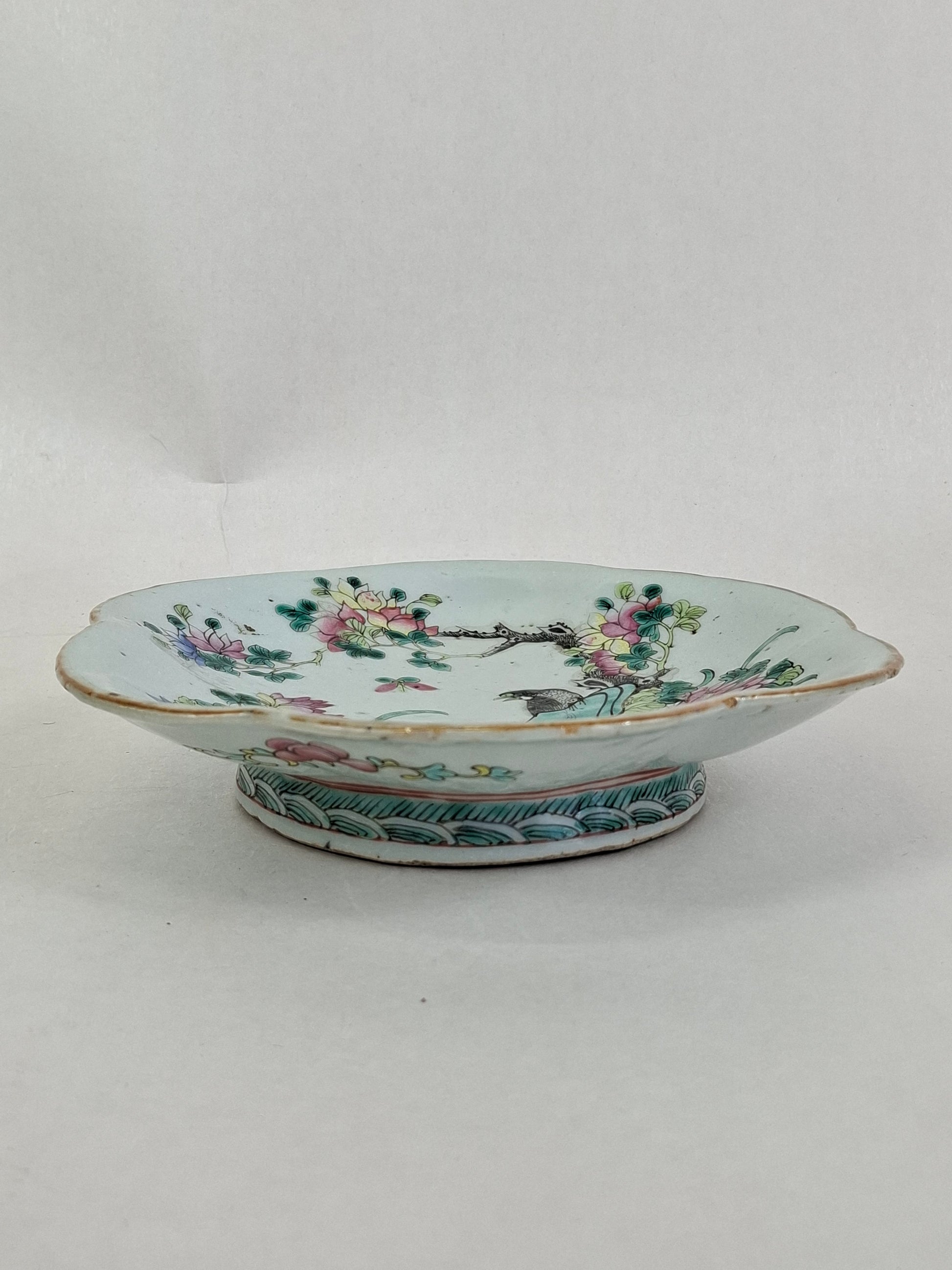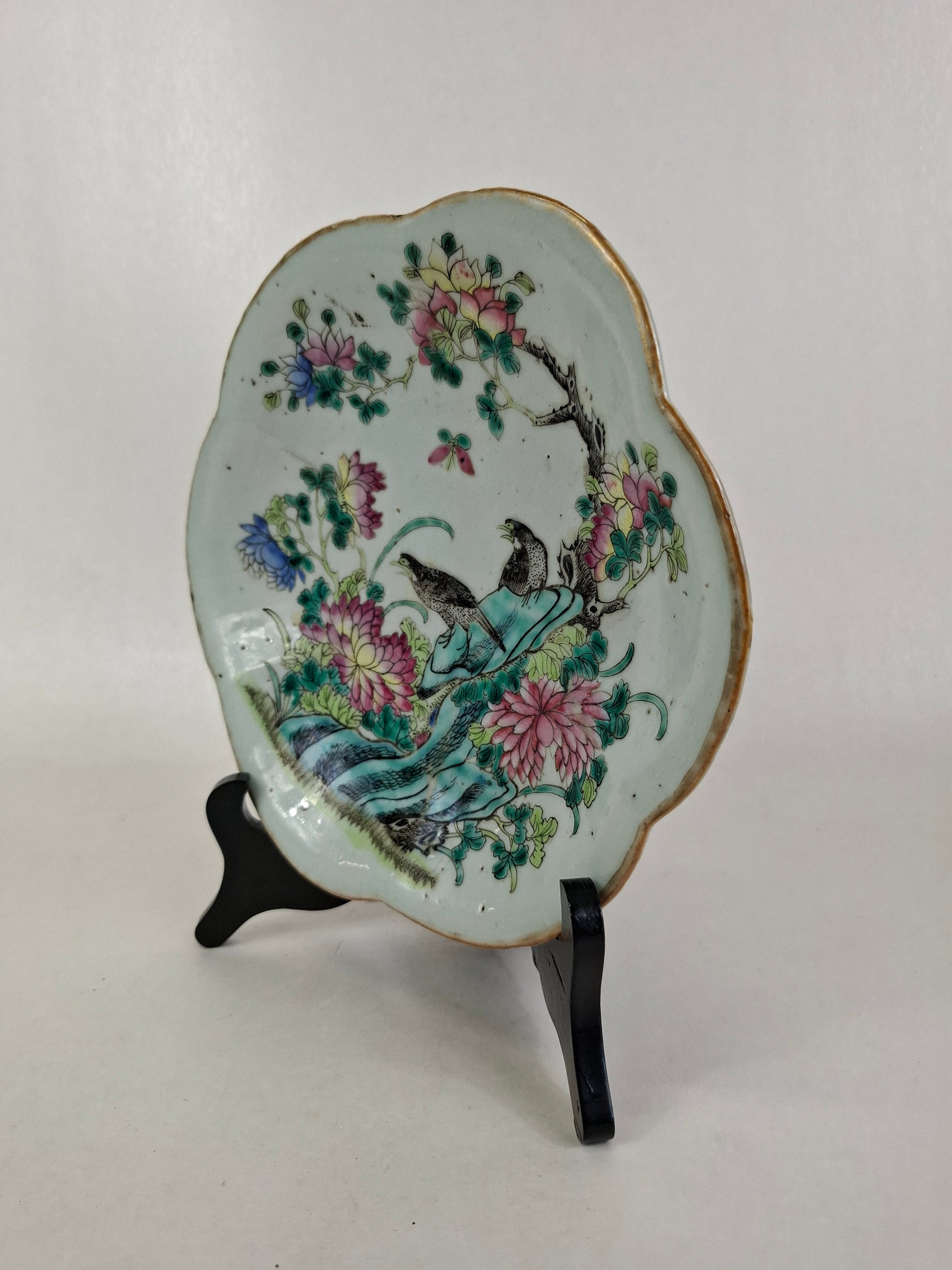 Antique Chinese hexagonal famille rose plate decorated with birds and flowers // Tongzhi mark - 19th century