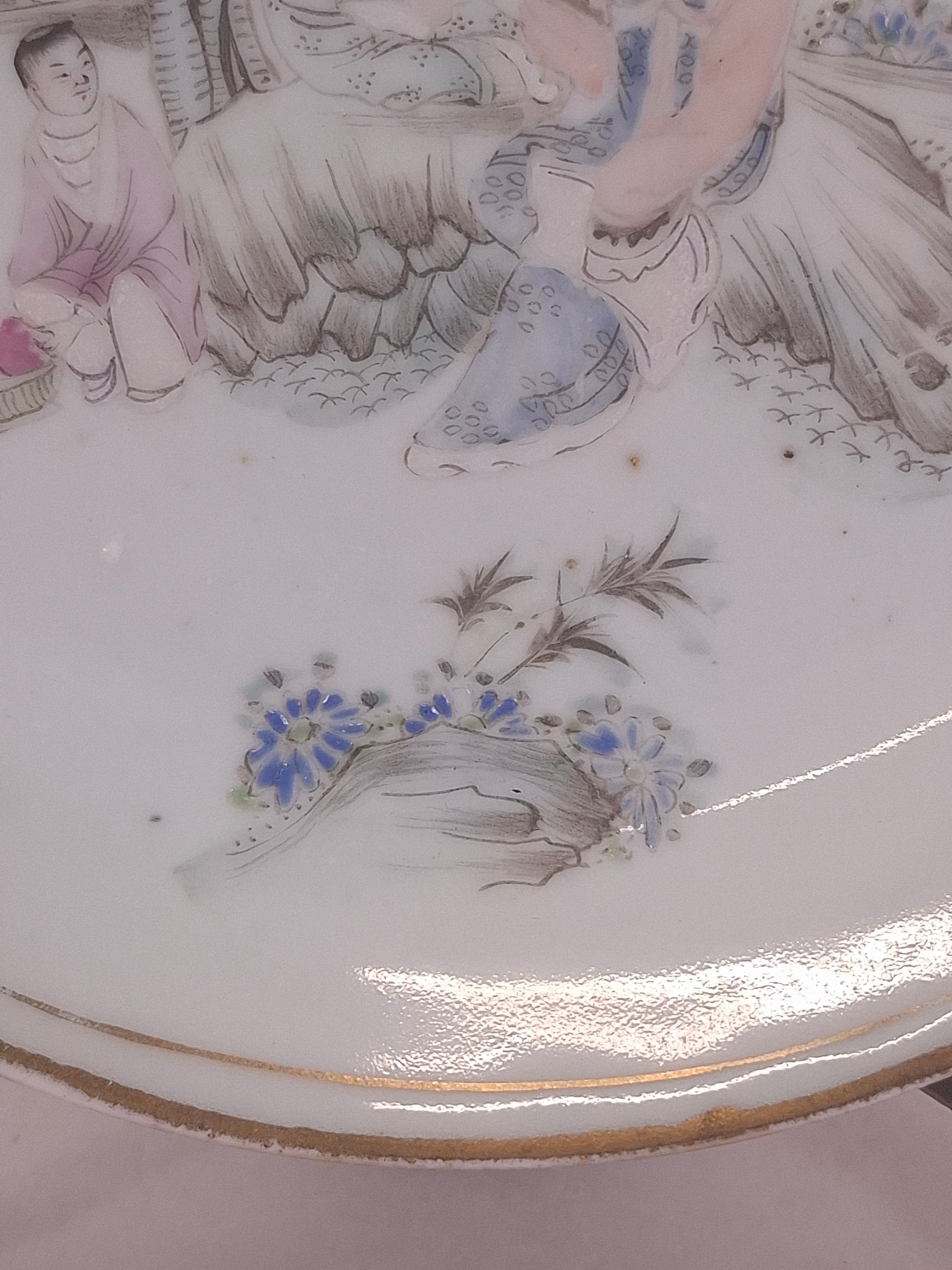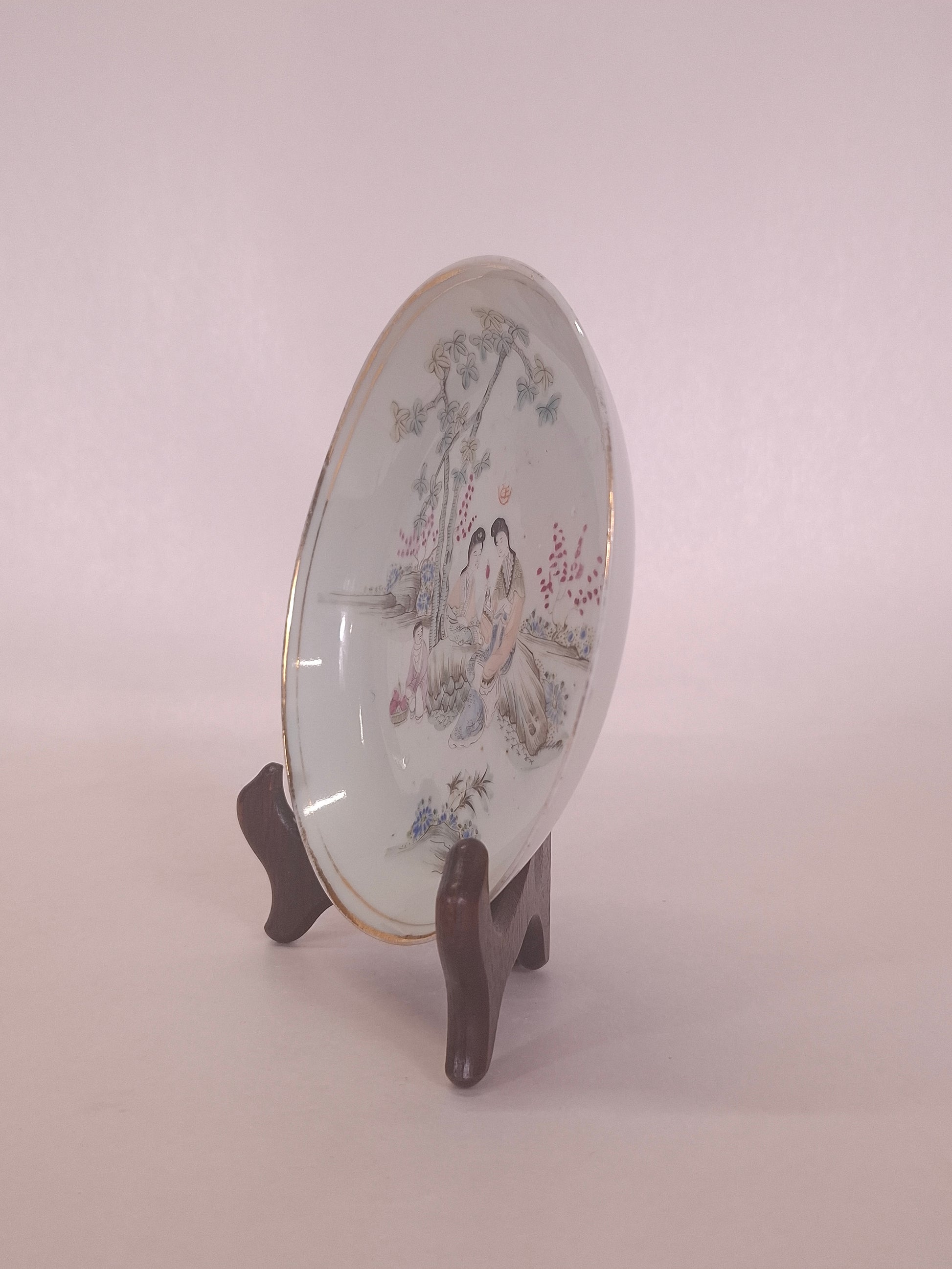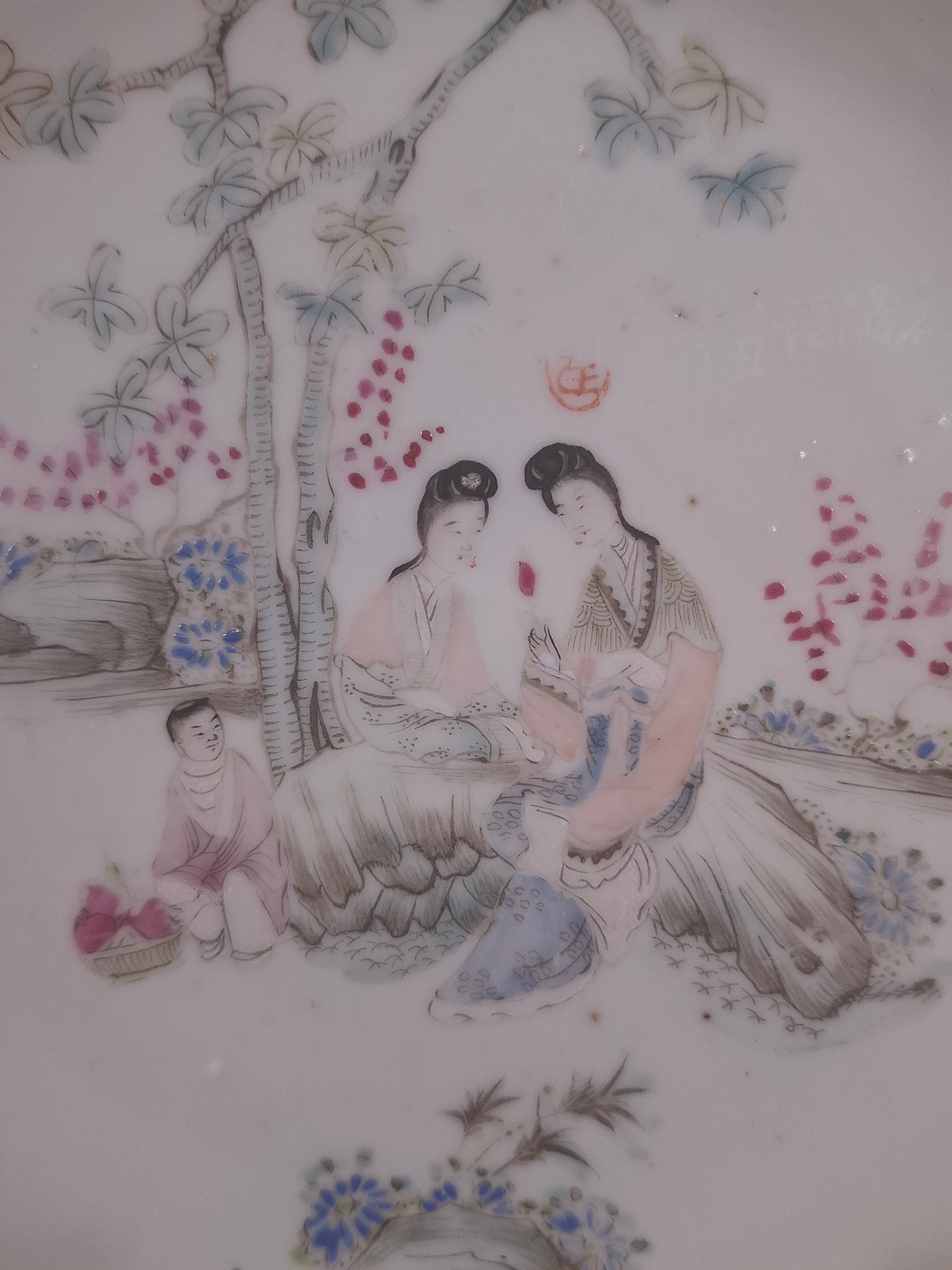 Antique Chinese plate decorated with a garden scene // Republic period (1912-1949)