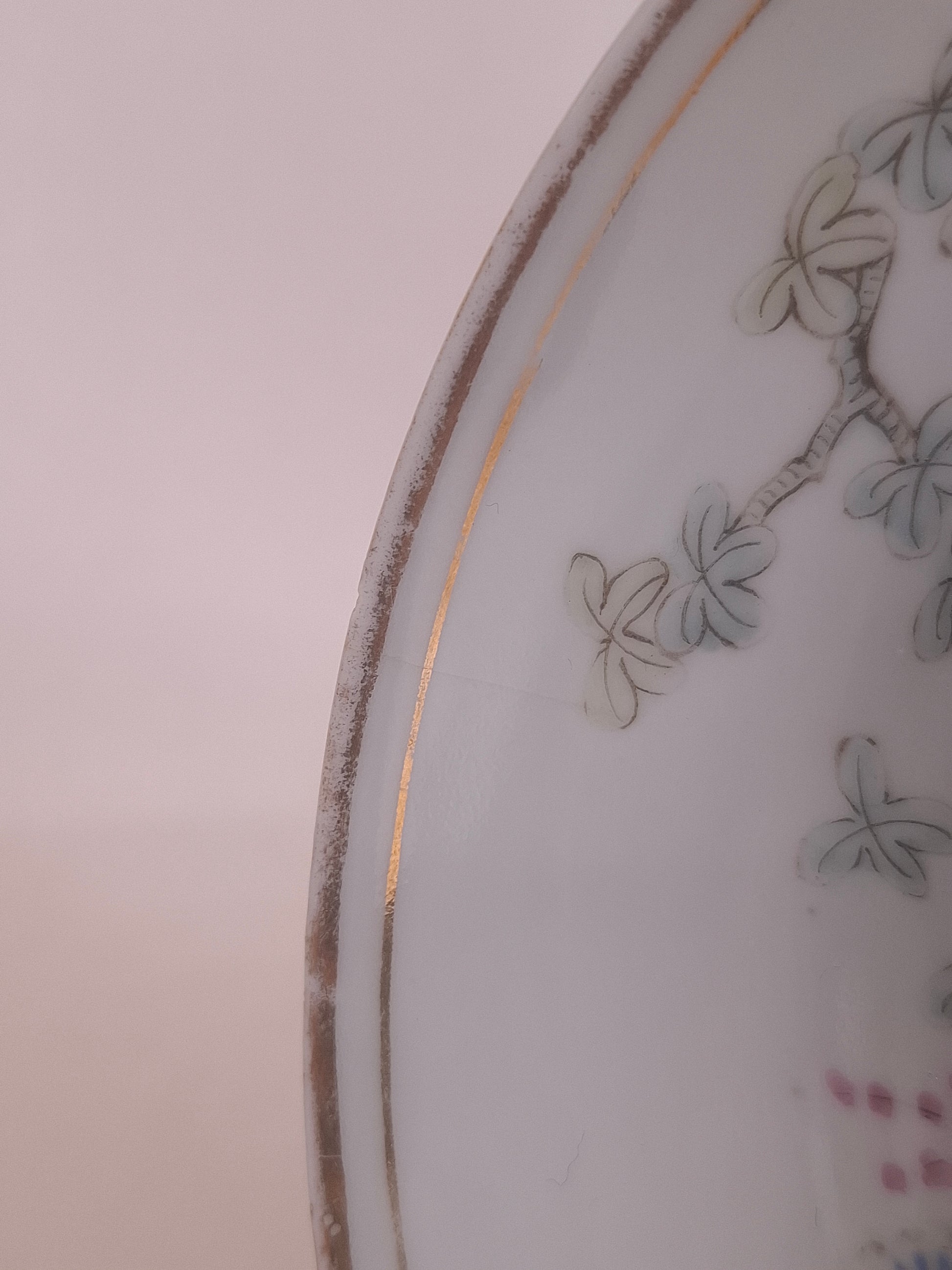The plate is in a good condition. At the rim, there is an old hairline (see detailed pictures). No other damages or restorations found (UV checked).