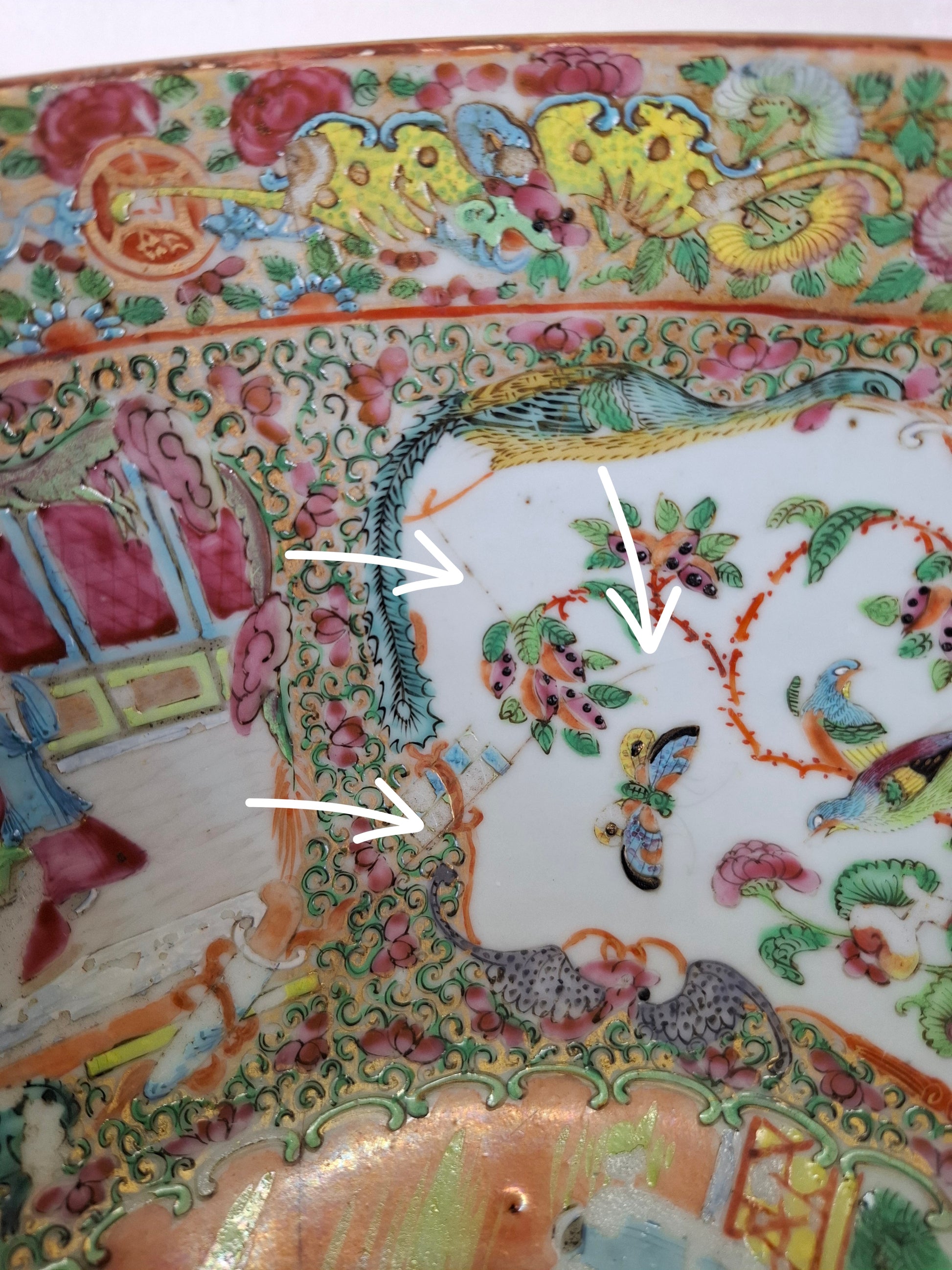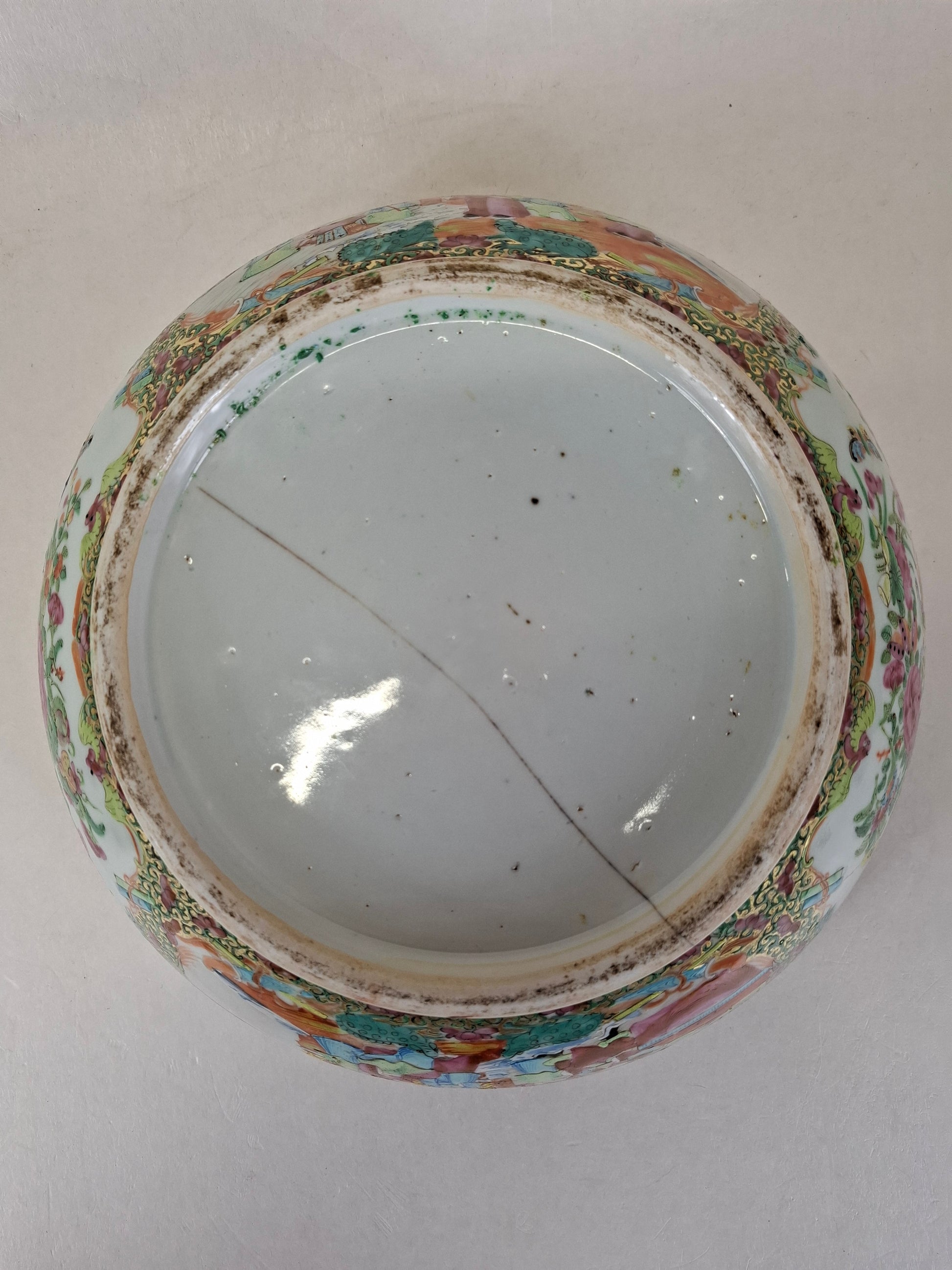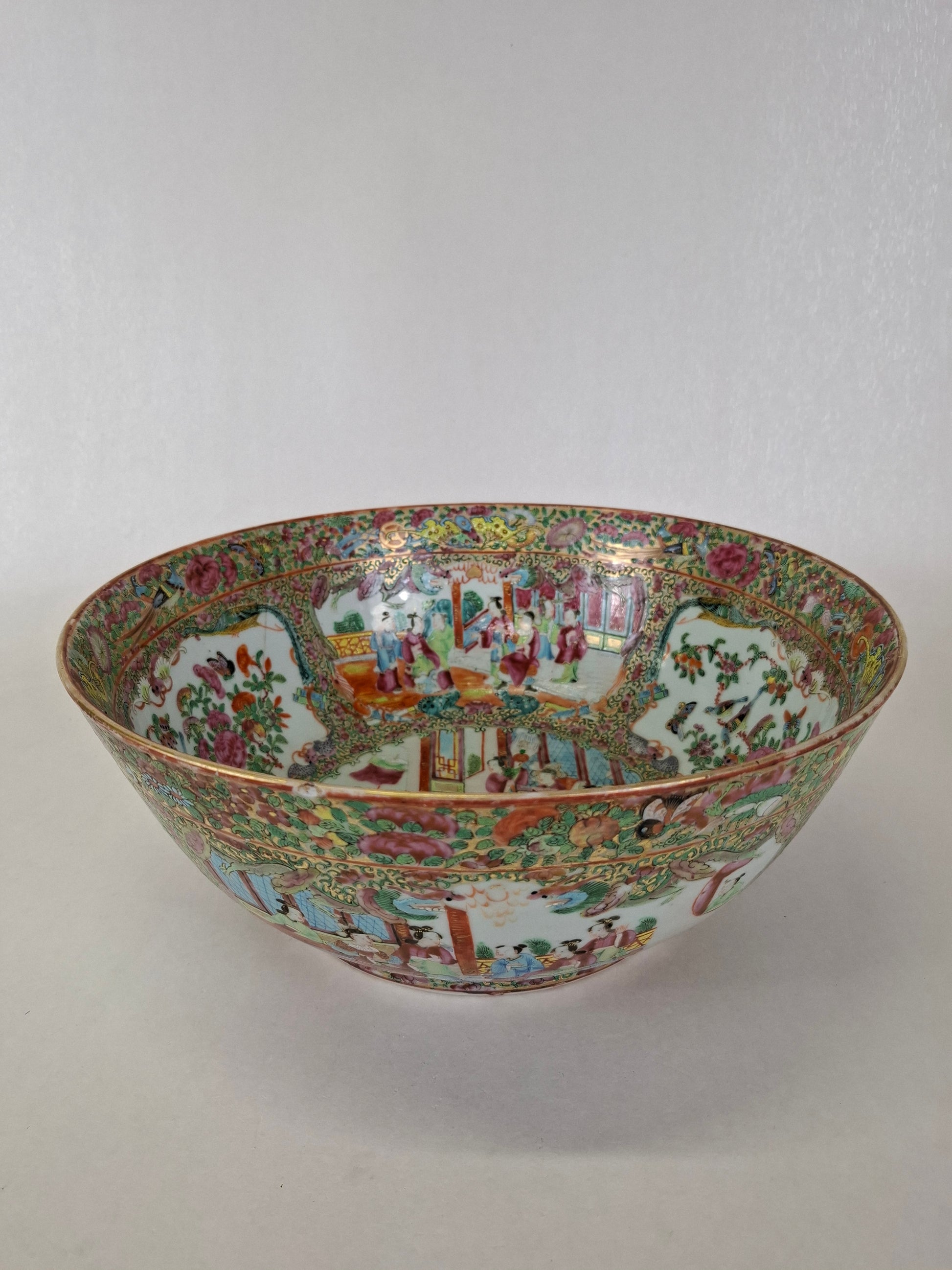 Large antique Chinese canton rose medallion bowl decorated with Imperial scenes // Qing Dynasty - 19th century