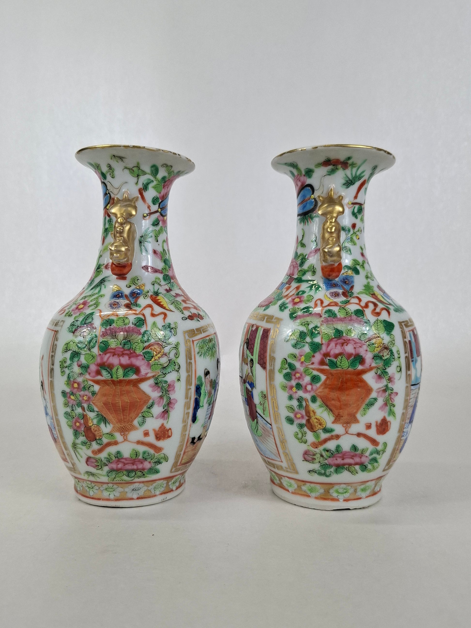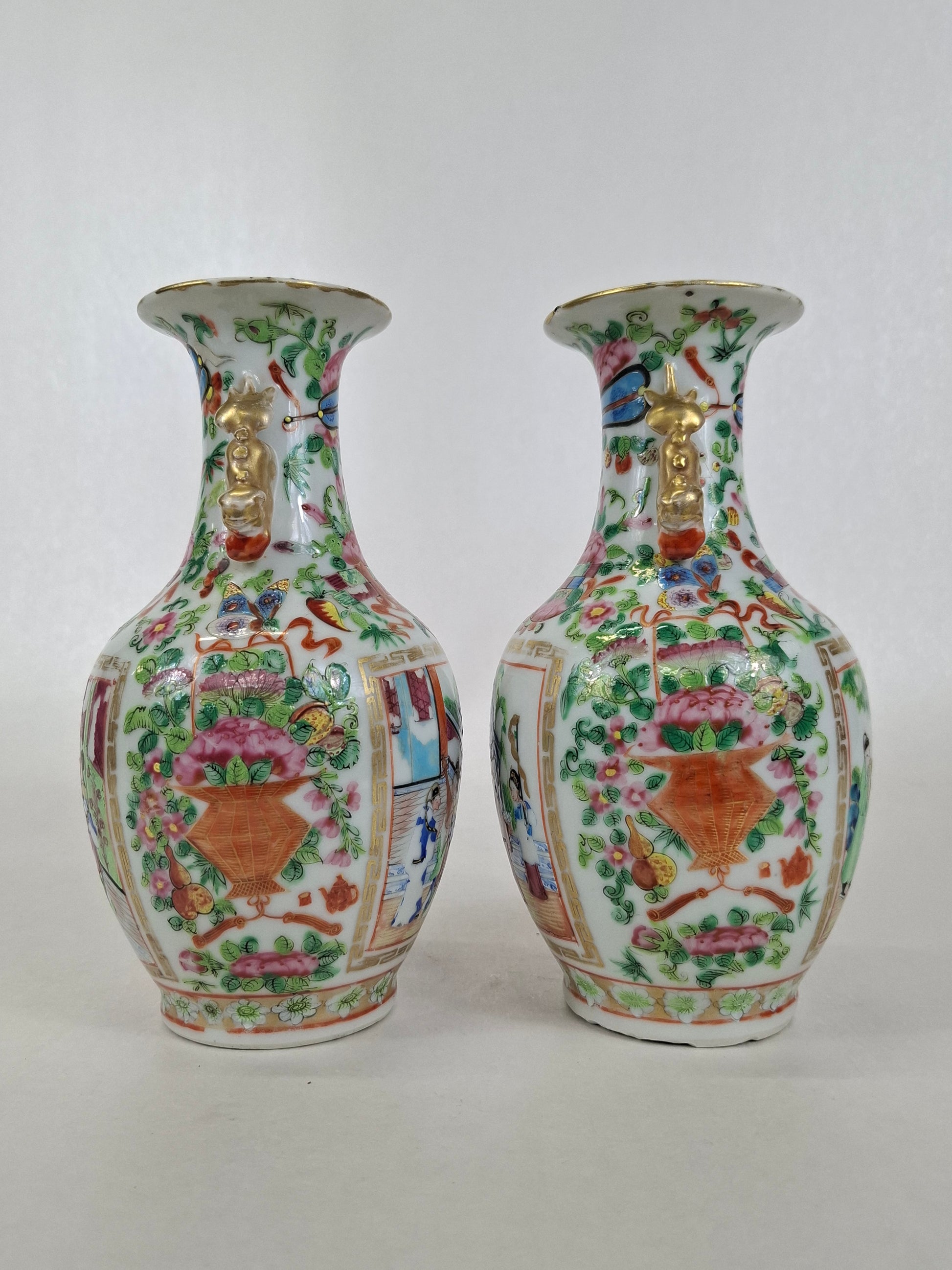 Pair antique Chinese Mandarin rose medallion vases // Qing Dynasty - Mid 19th century