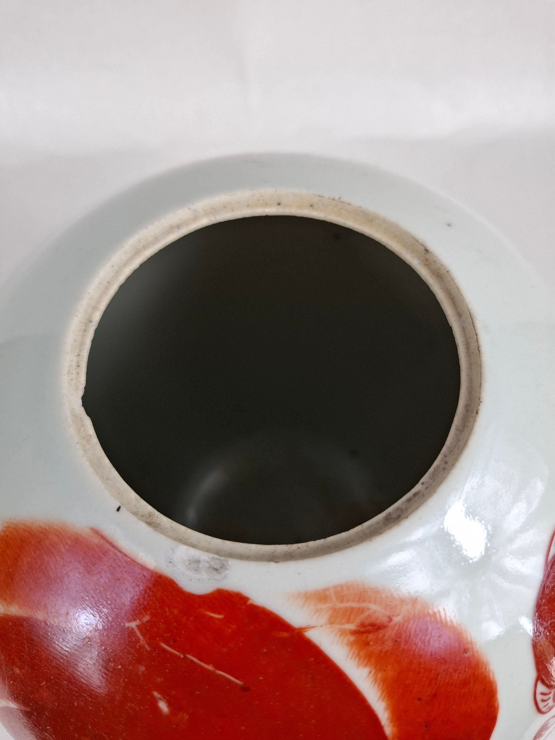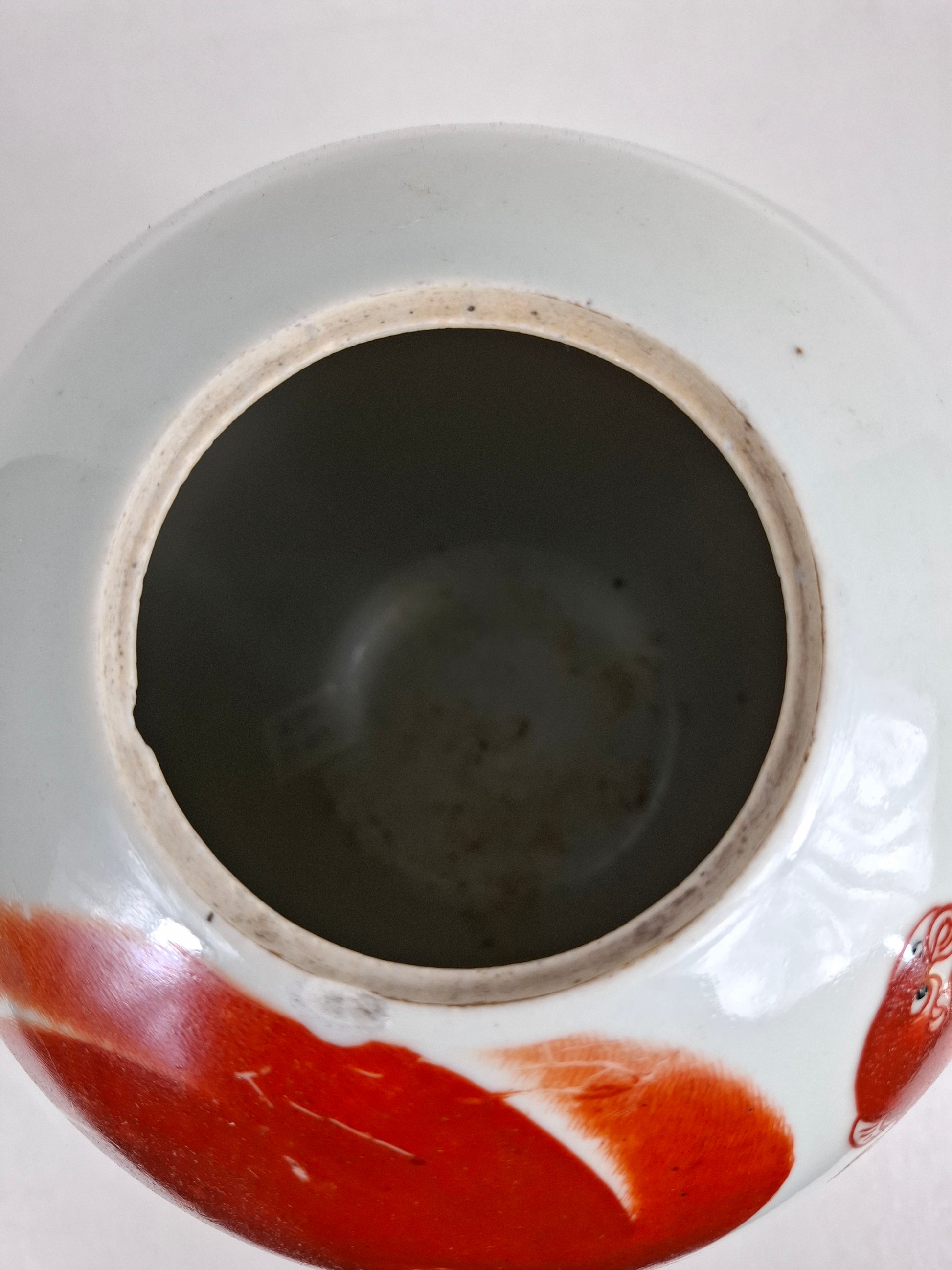 Pote de gengibre chinês antigo decorado com cães foo vermelhos // Período da República (1912-1949)