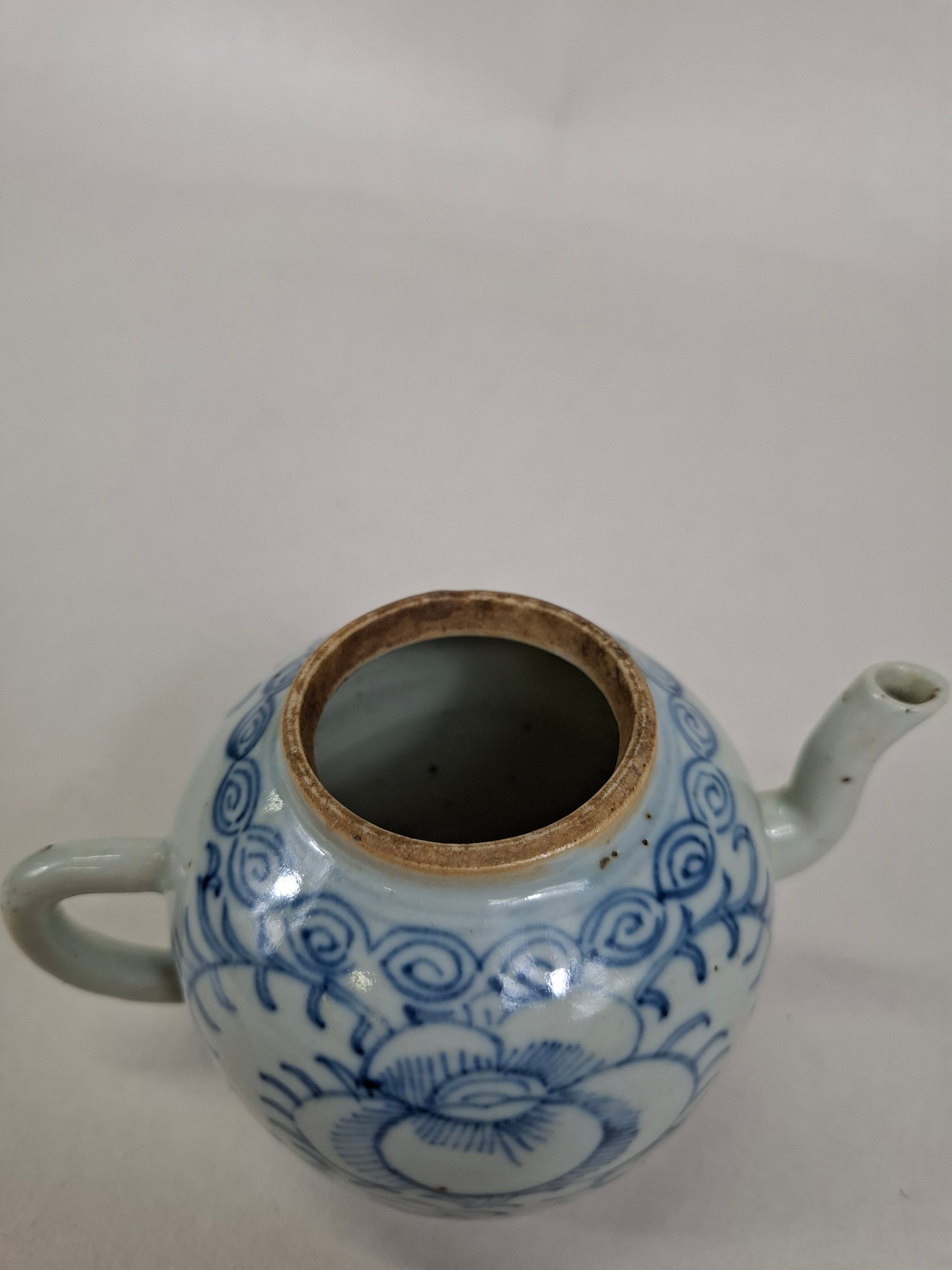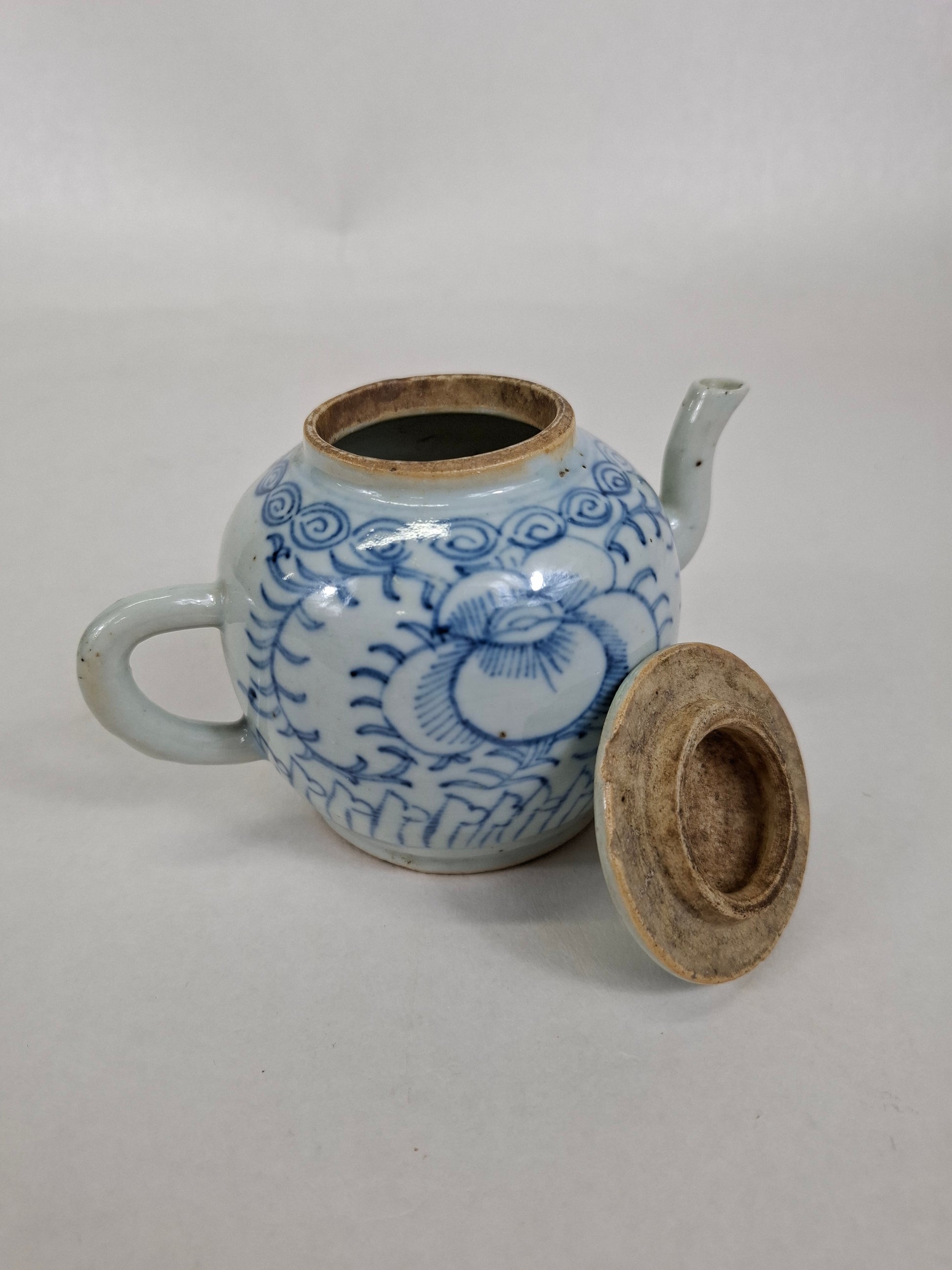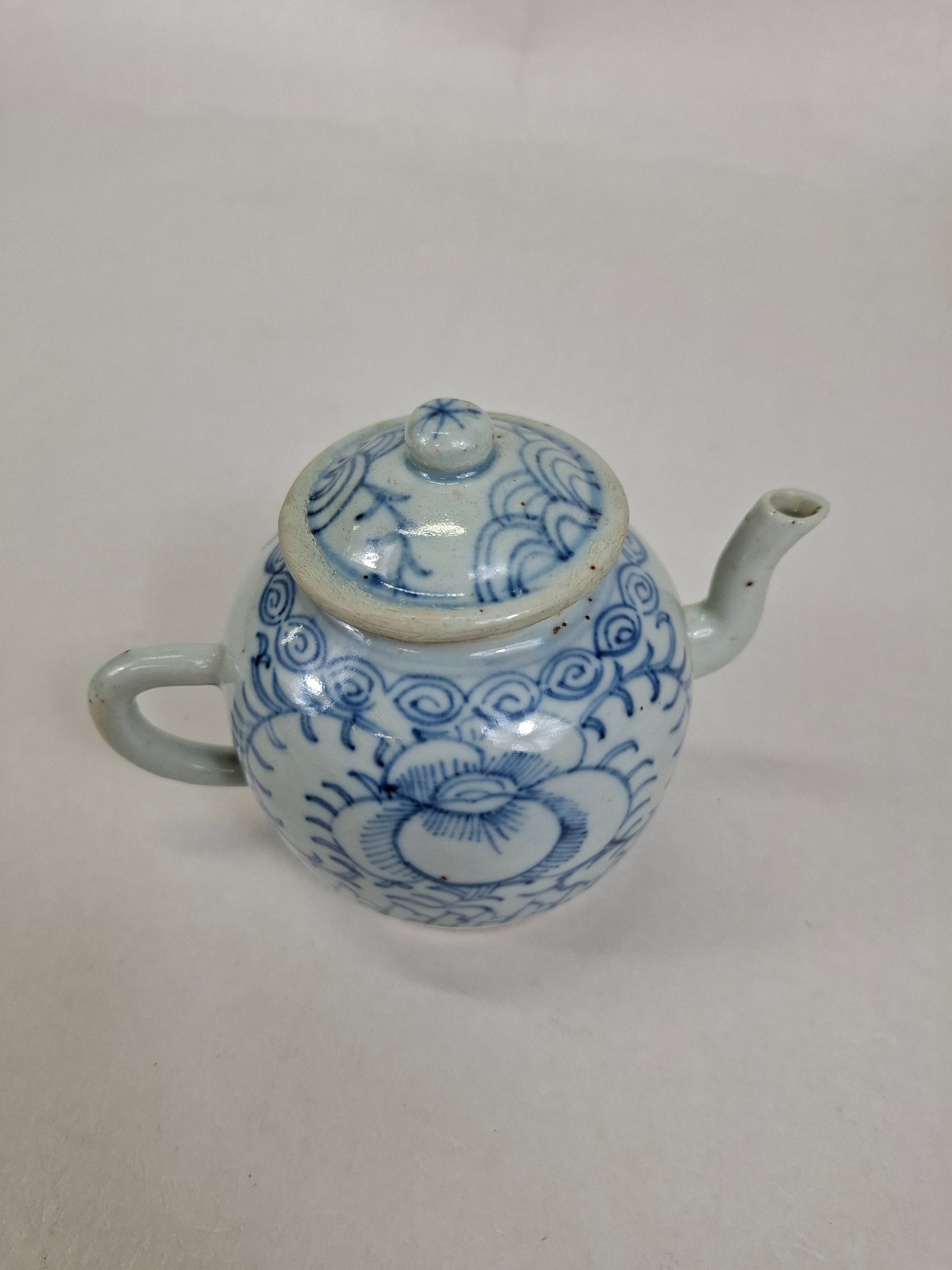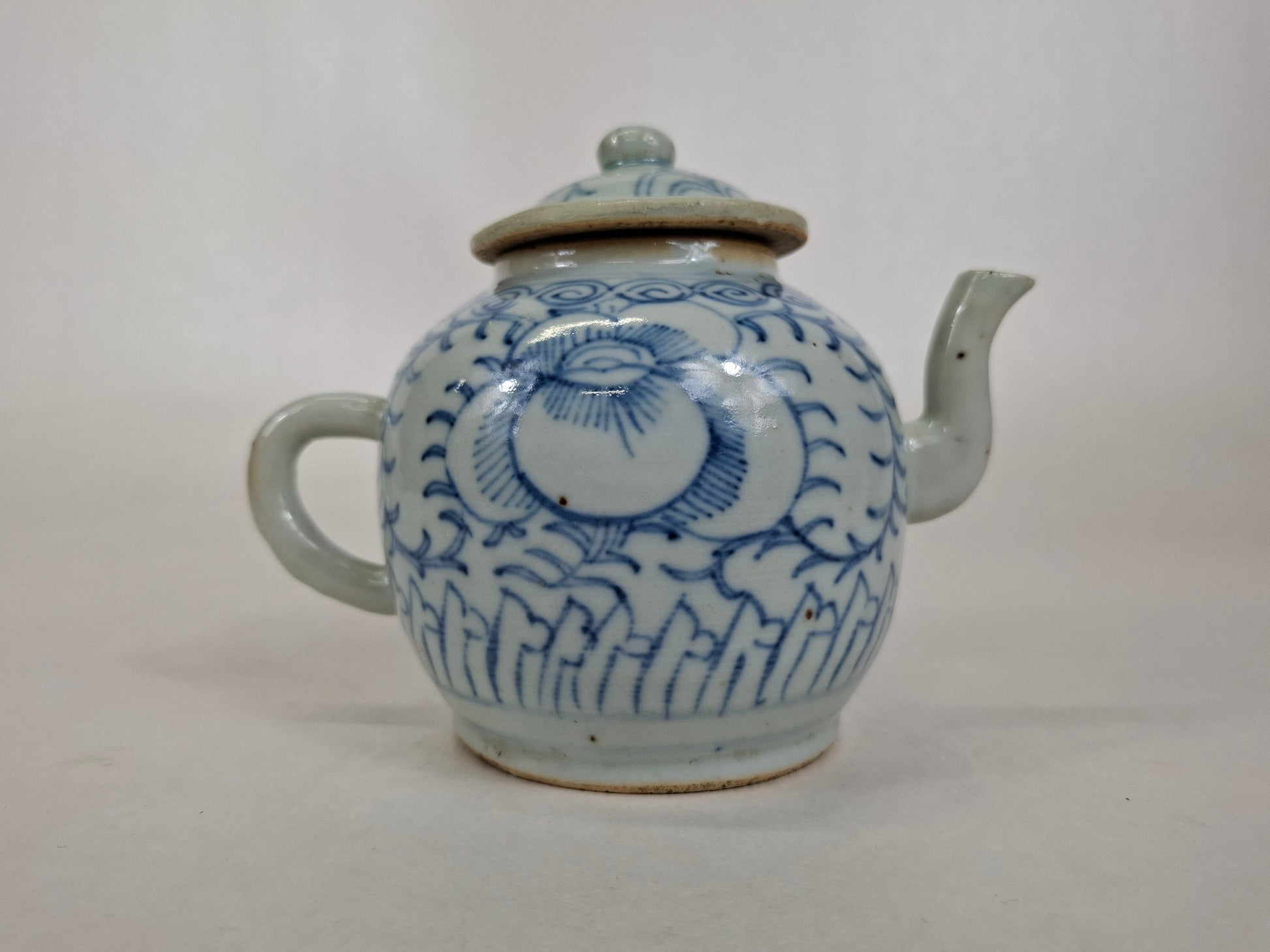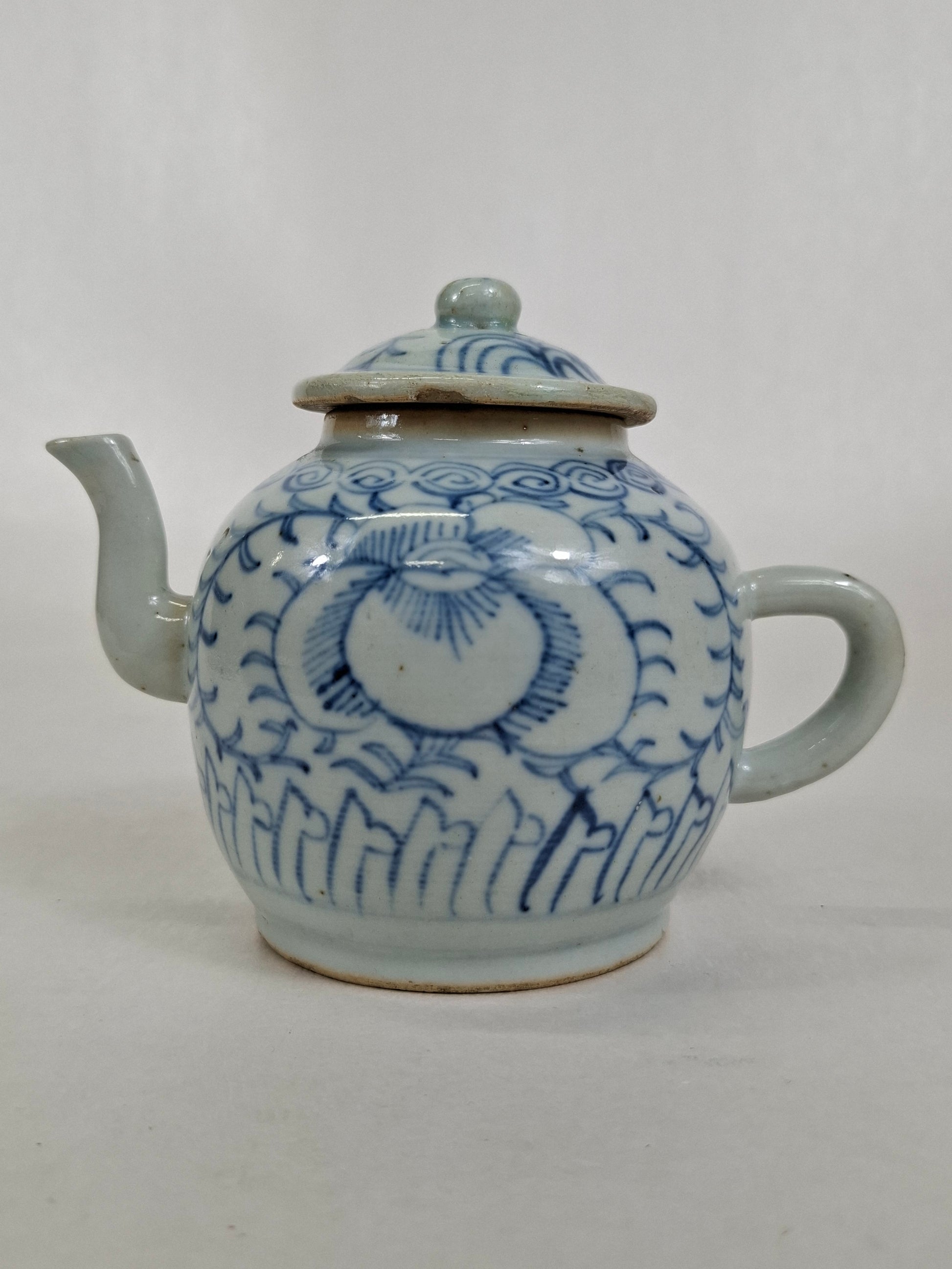 Bule chinês antigo decorado com flores // Dinastia Qing - século 19