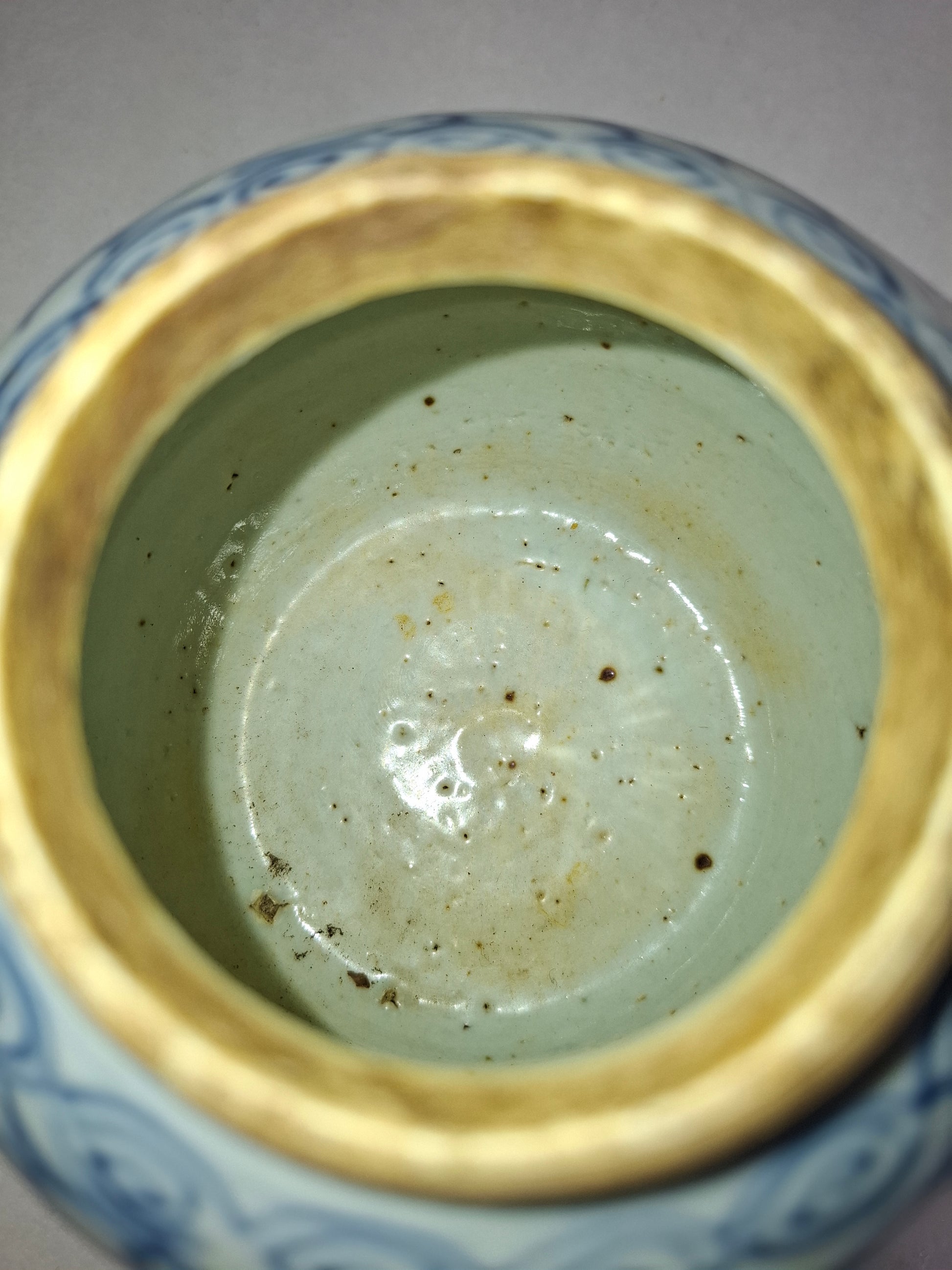 O bule está em boas condições. Na borda da tampa, há uma lasca antiga que foi criada durante o processo de produção. Nenhum outro dano ou restauração encontrado (verificado com UV).