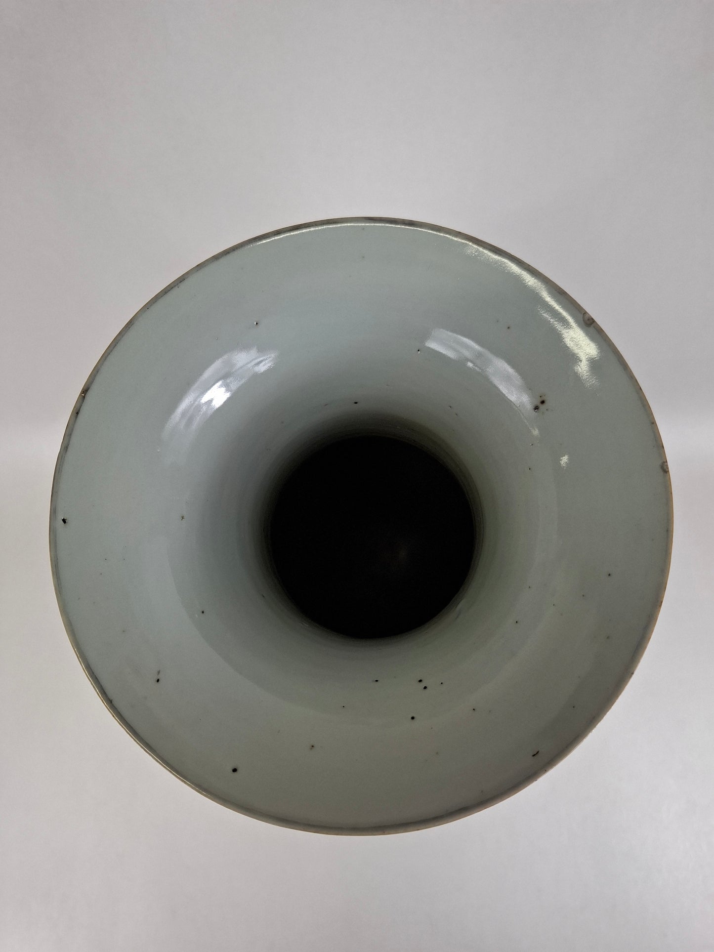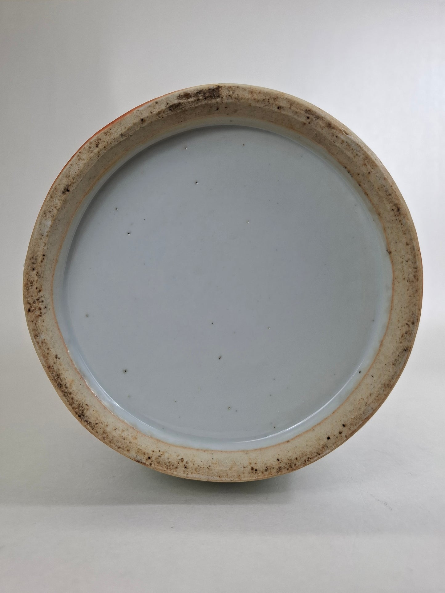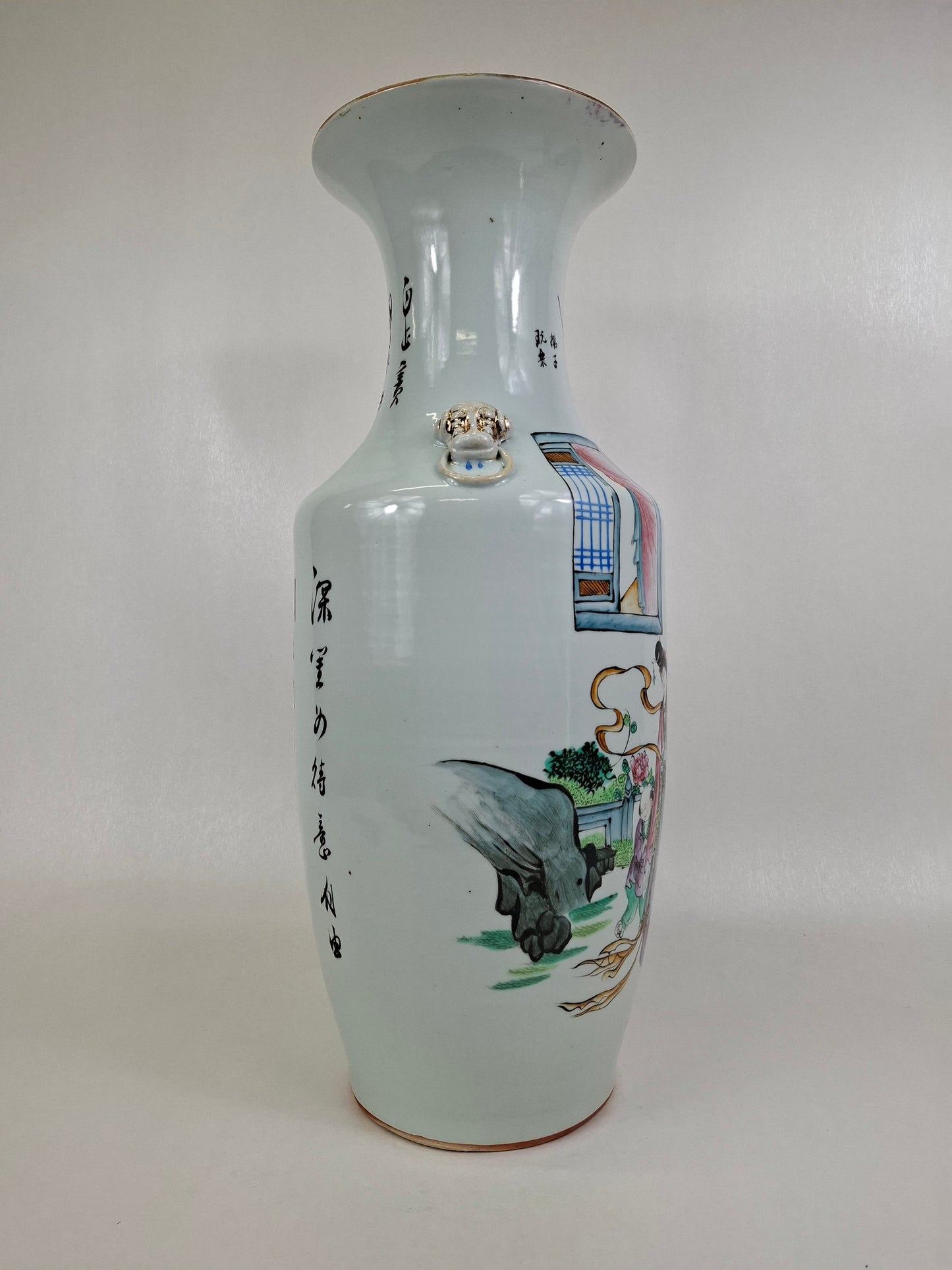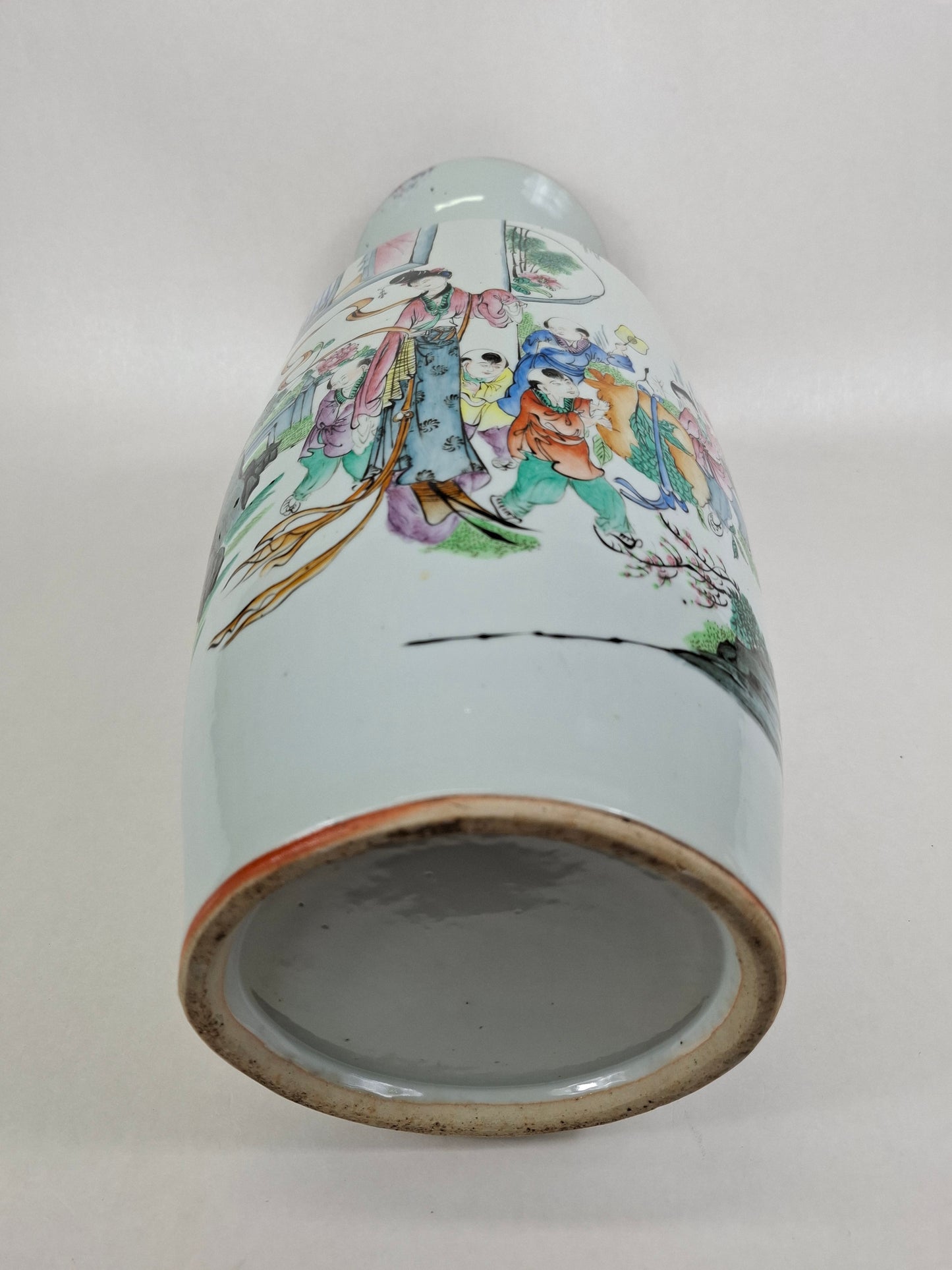 一件大型古董钱江瓷花瓶,饰以花园景致,描绘了嬉戏的孩童。瓶背饰有中国书法,象征着一首诗。该花瓶产于中国,可追溯至民国时期(1912-1949)。