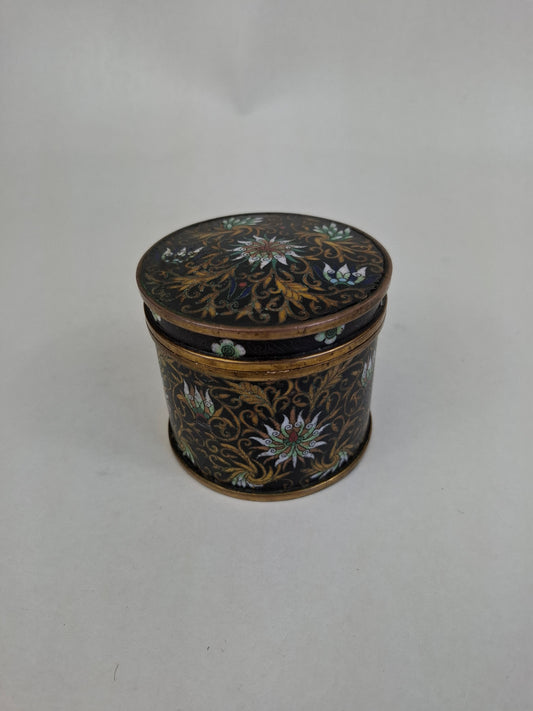 古董中国景泰蓝盖盒,饰有莲花//民国时期(1912-1949)