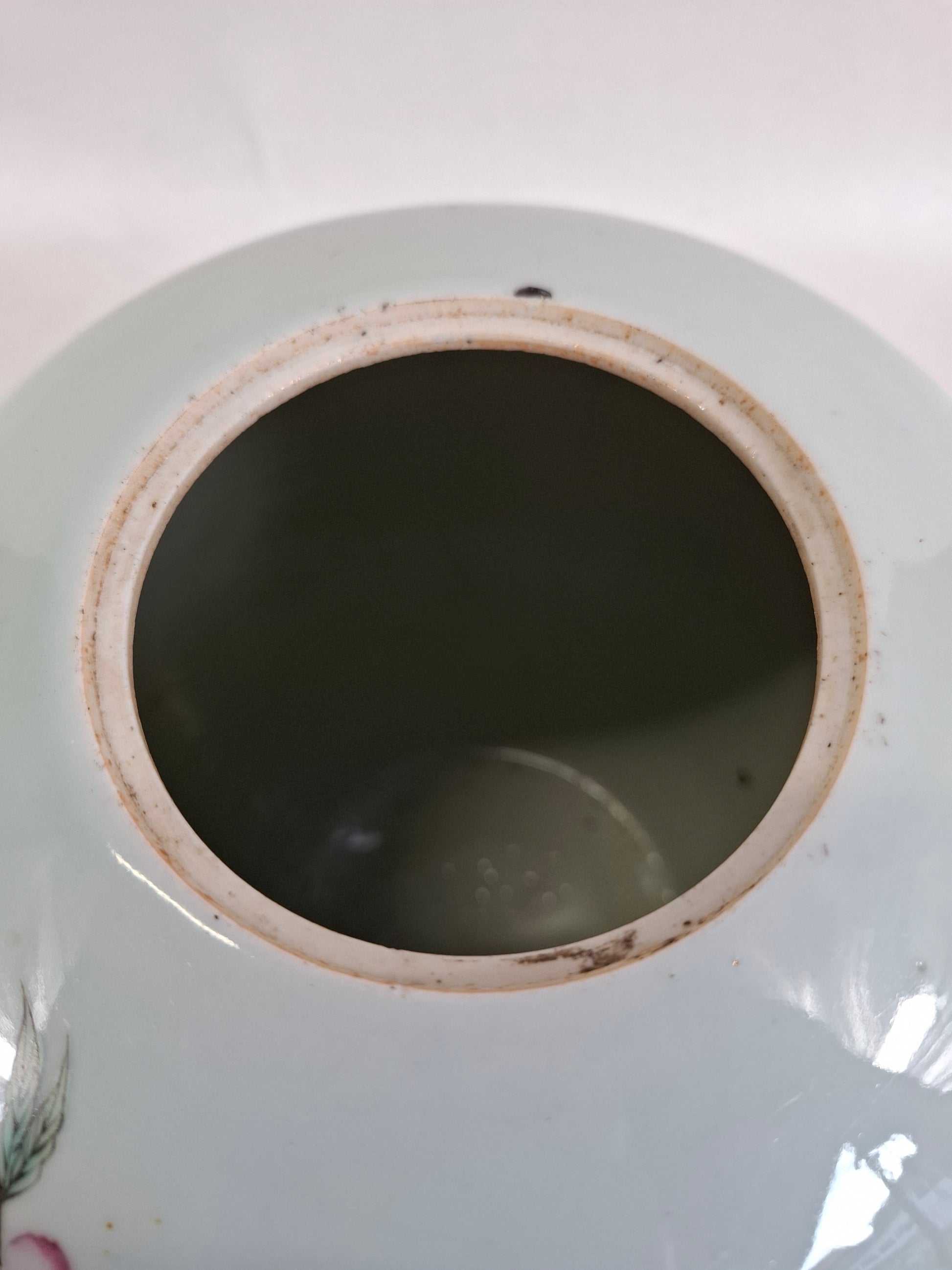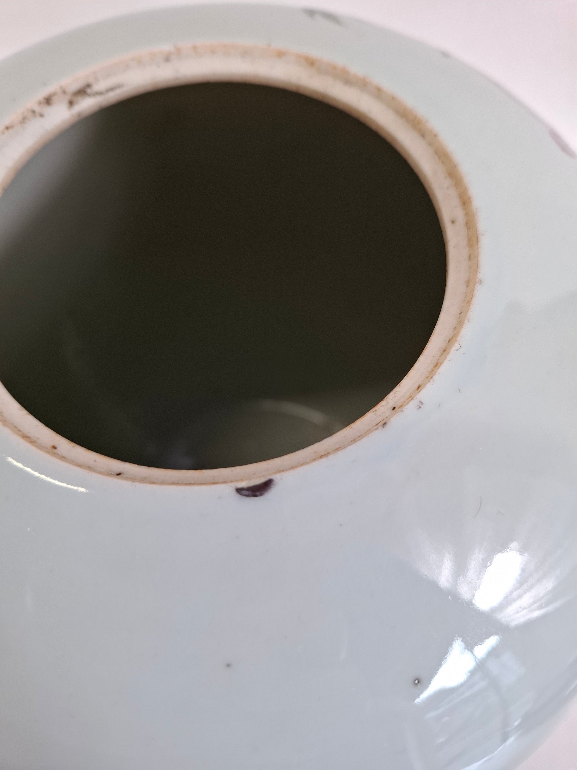 姜罐品相极佳。罐口边缘有一处极小的磕碰。罐底边缘有几处小磕碰(底部未上釉部分)。除此以外,未发现其他损坏或修复痕迹(已用紫外线灯检查)。