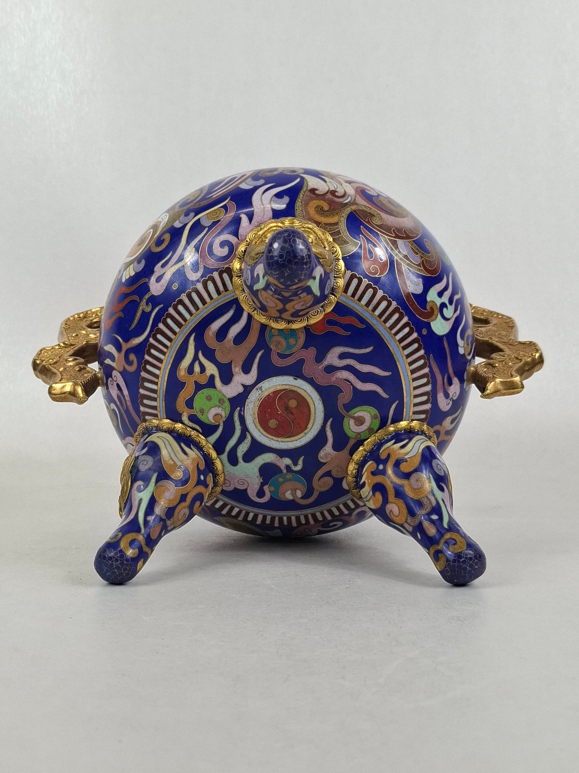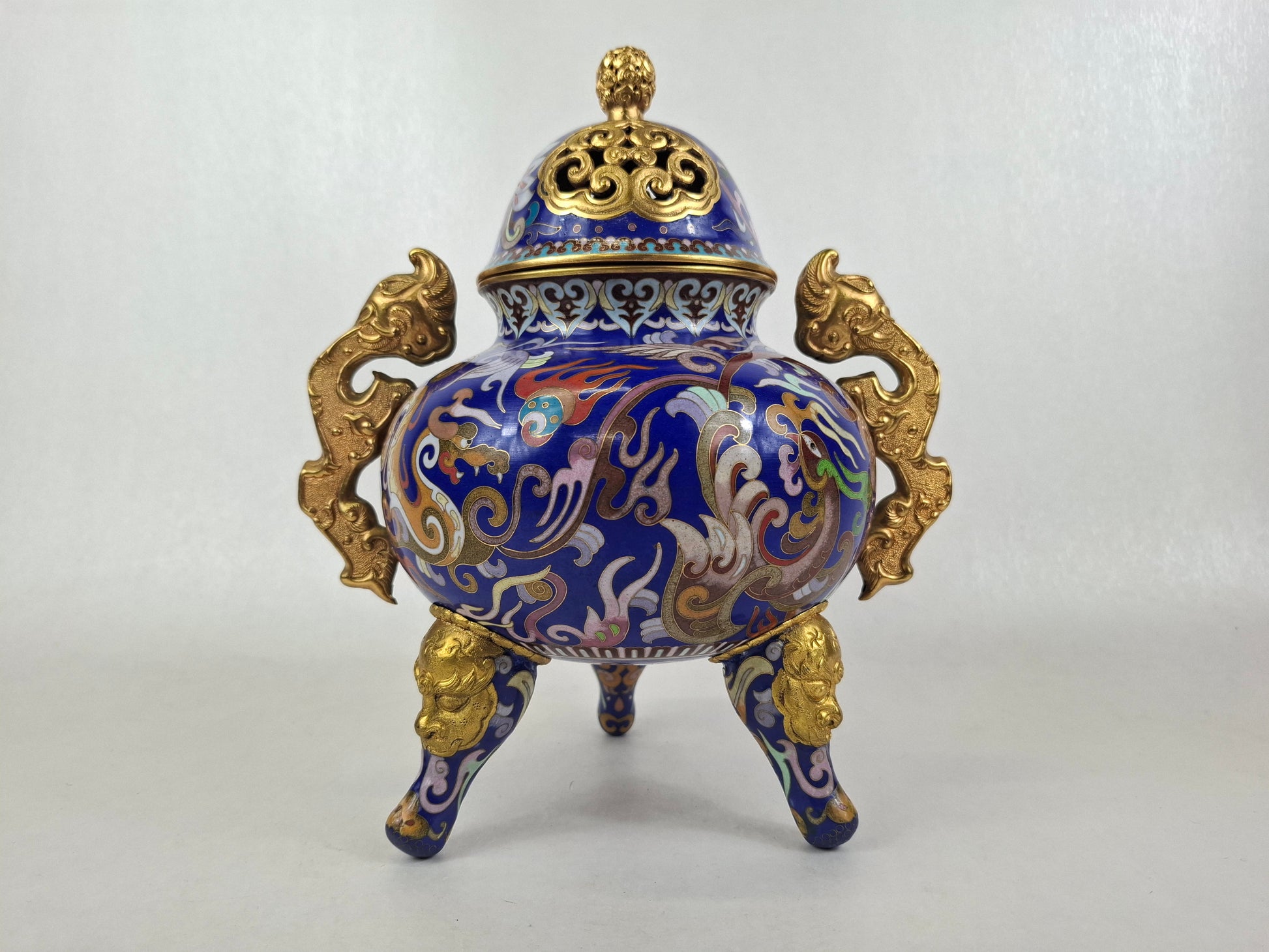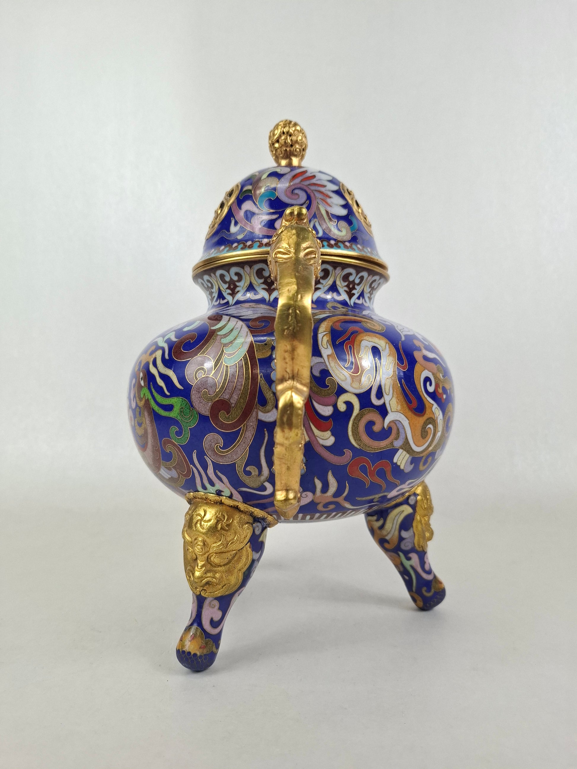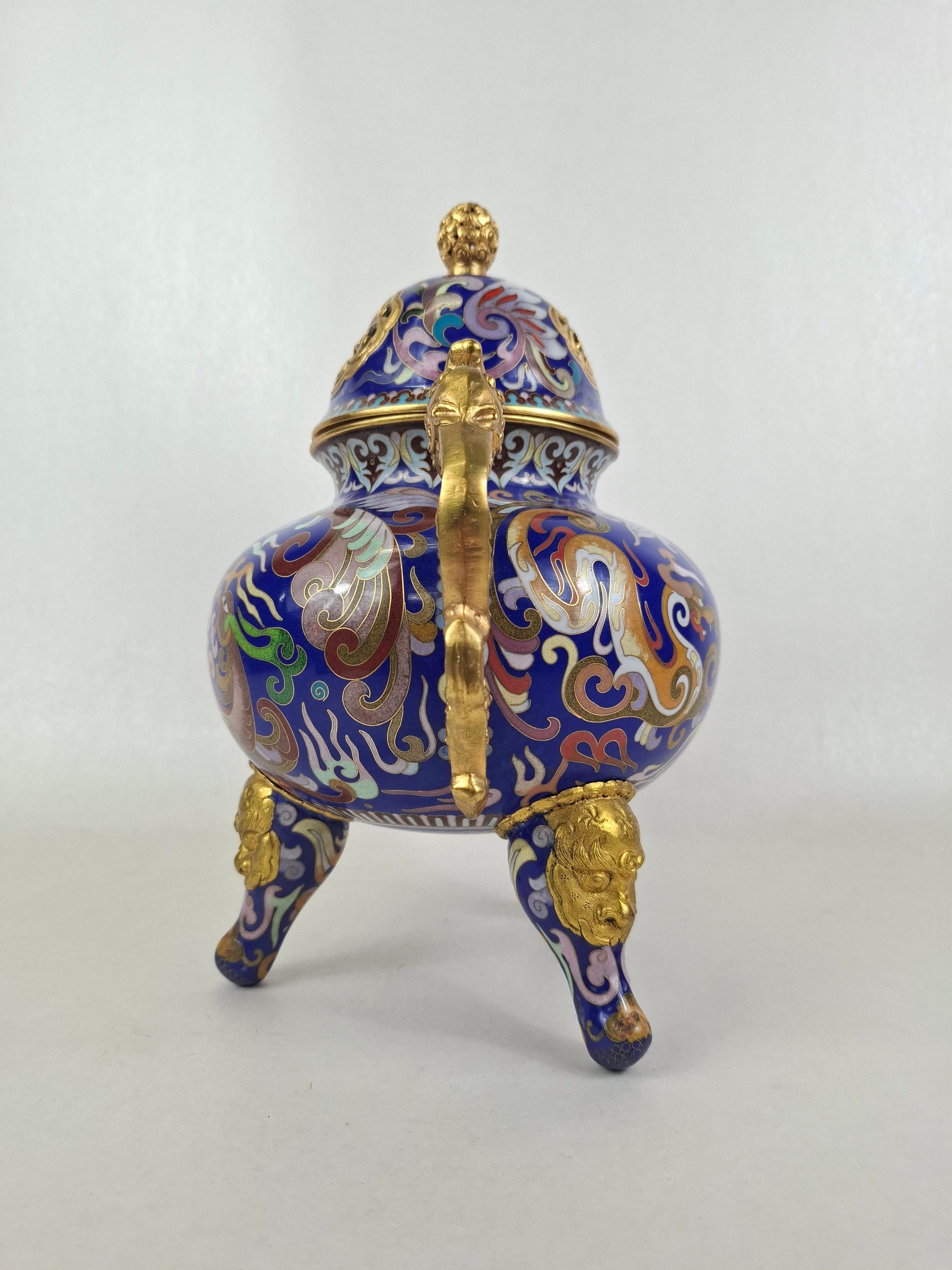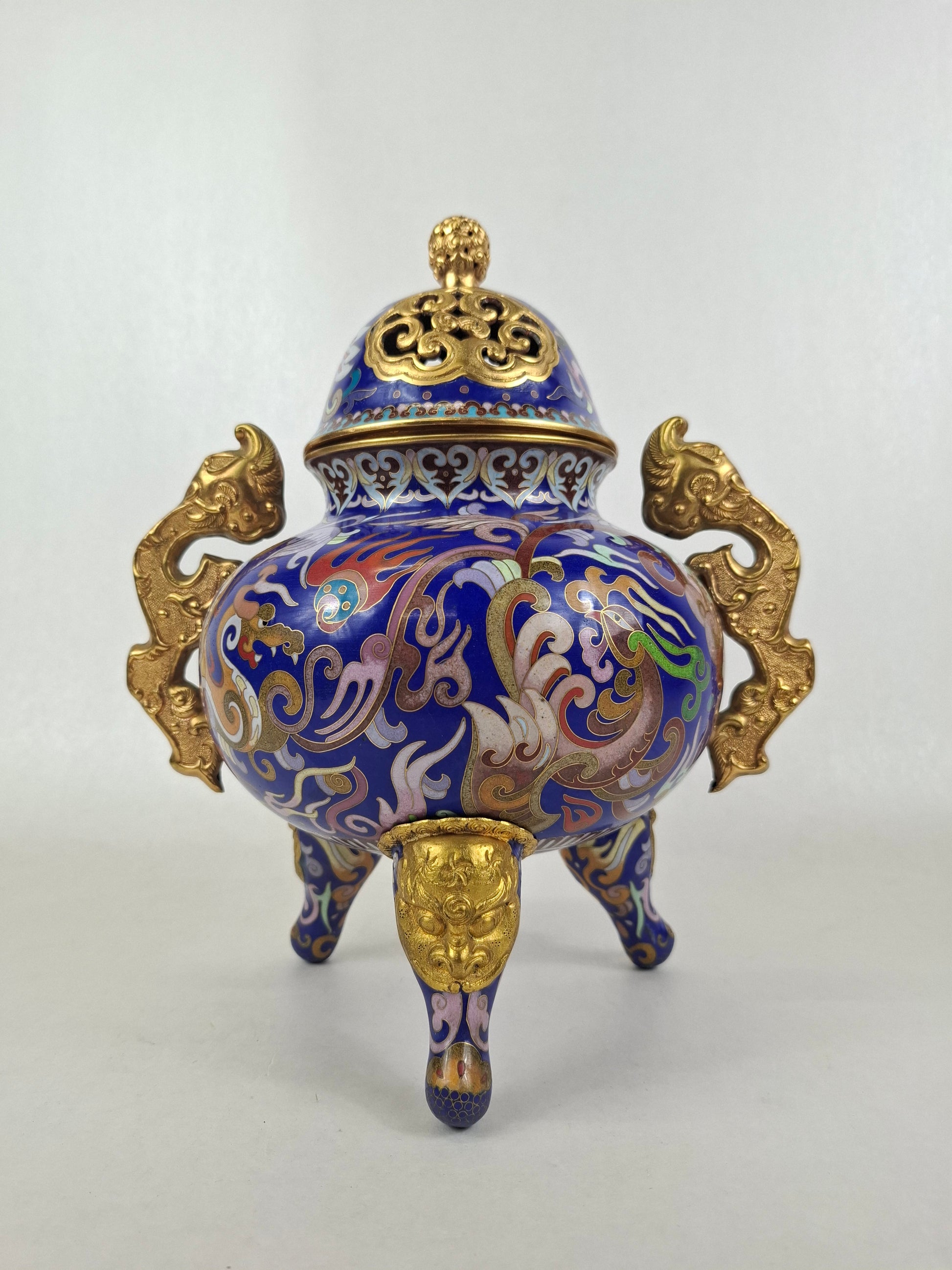 中国景泰蓝三脚香炉,饰以龙凤纹 // 20世纪