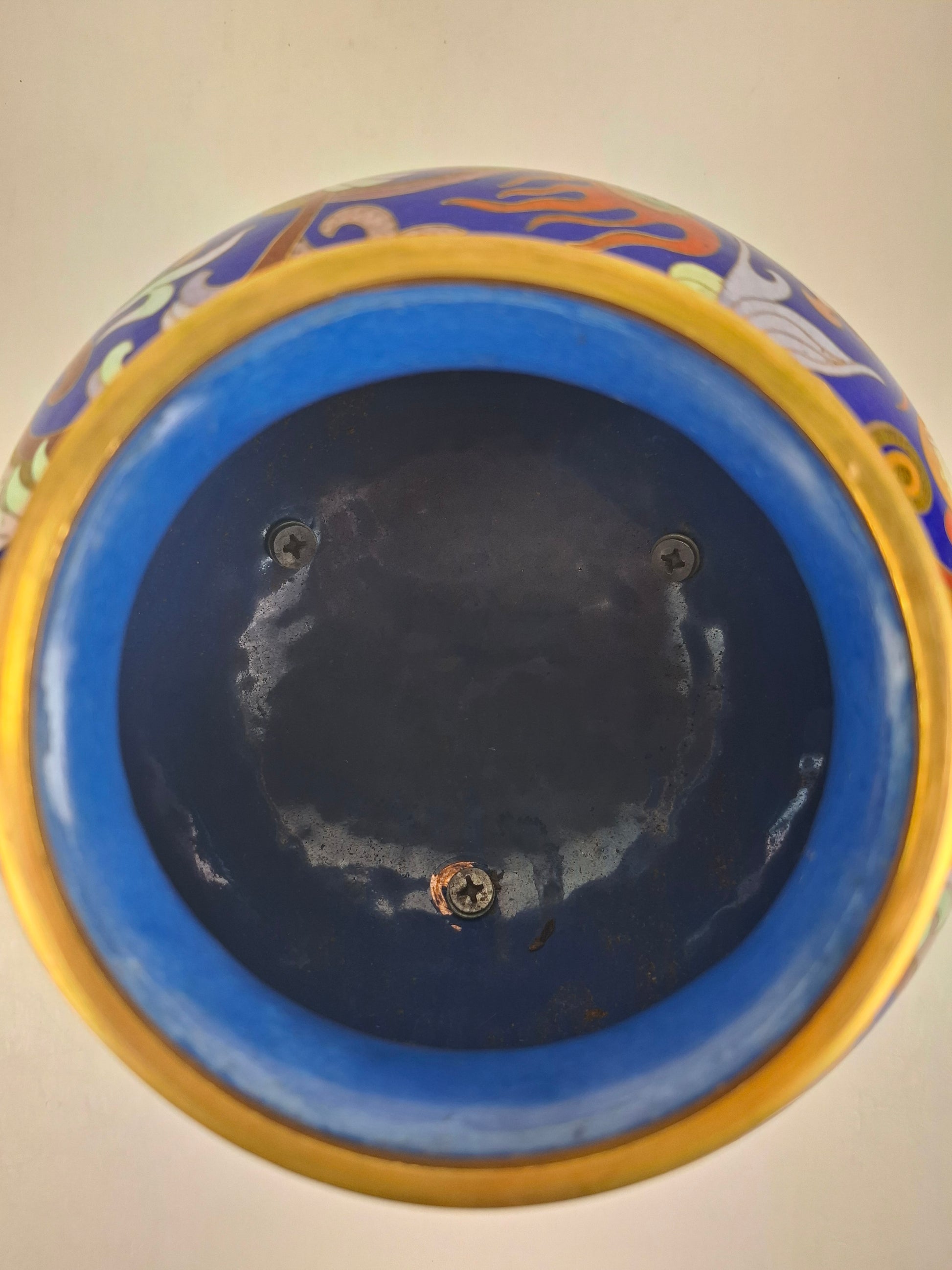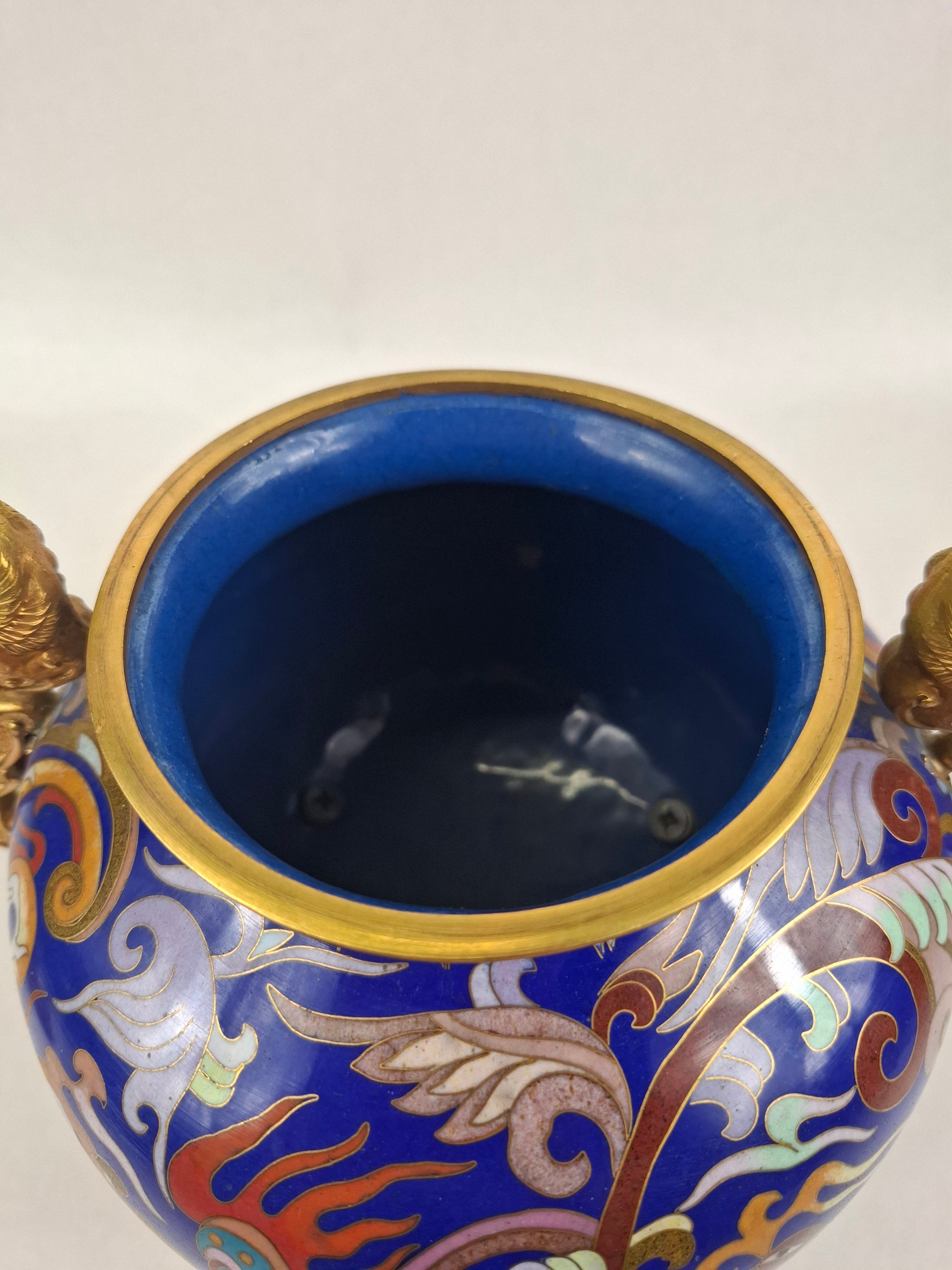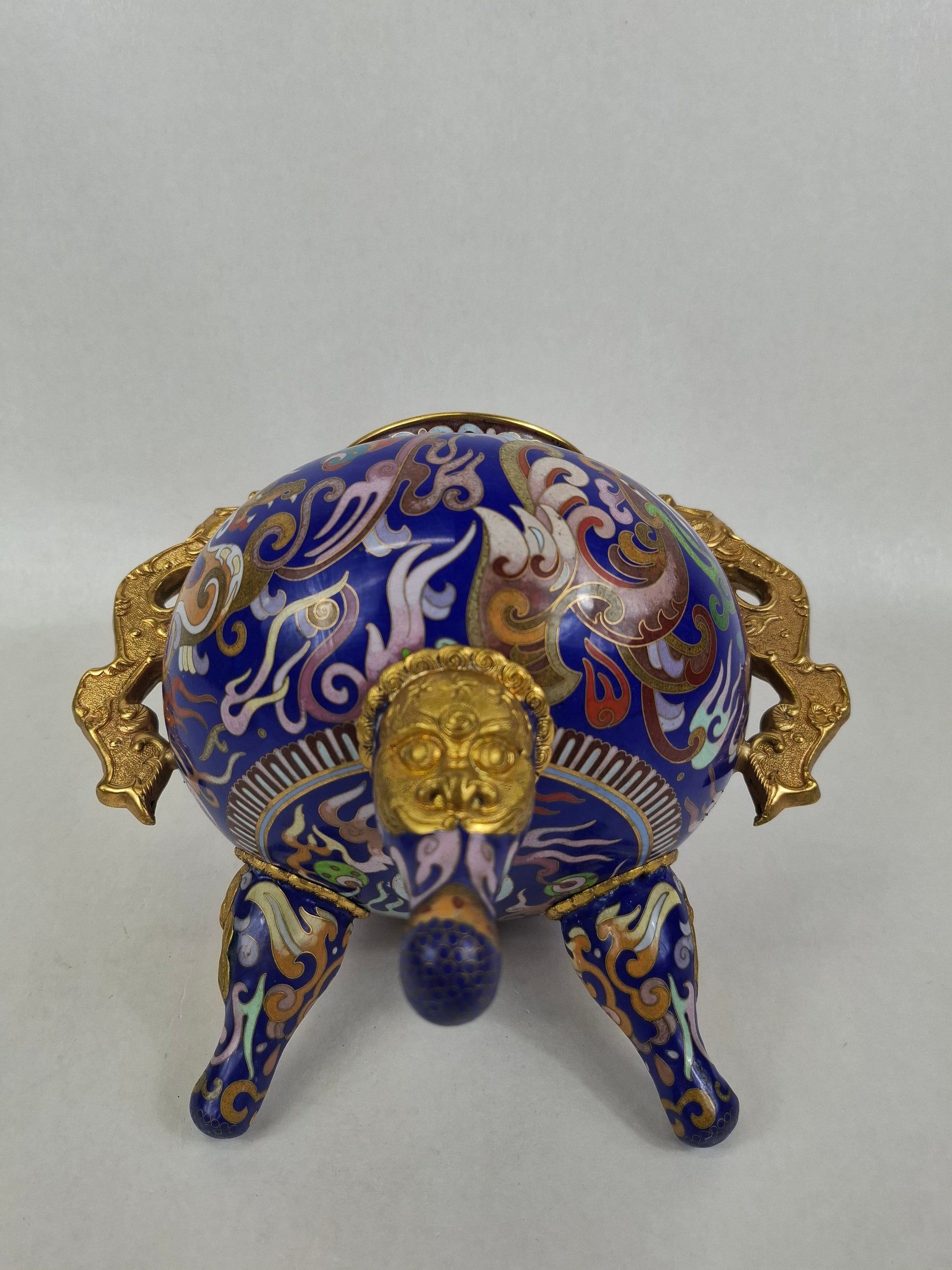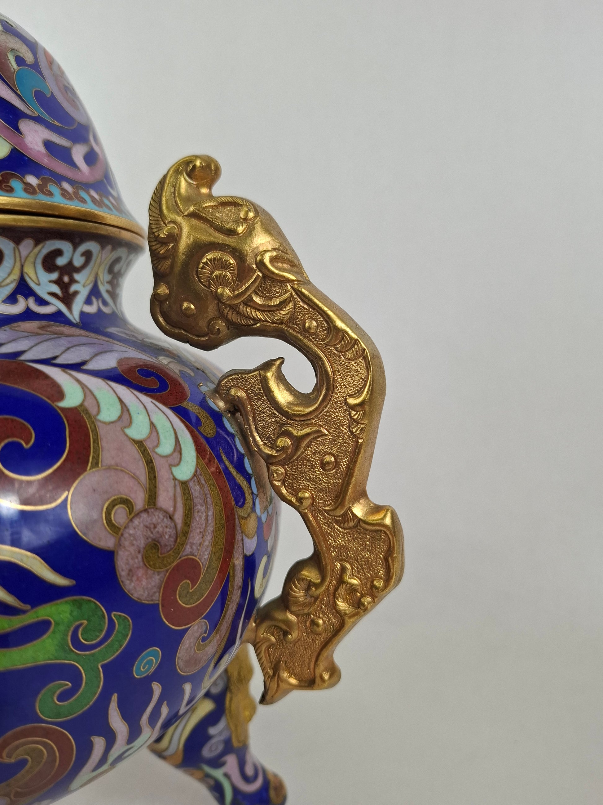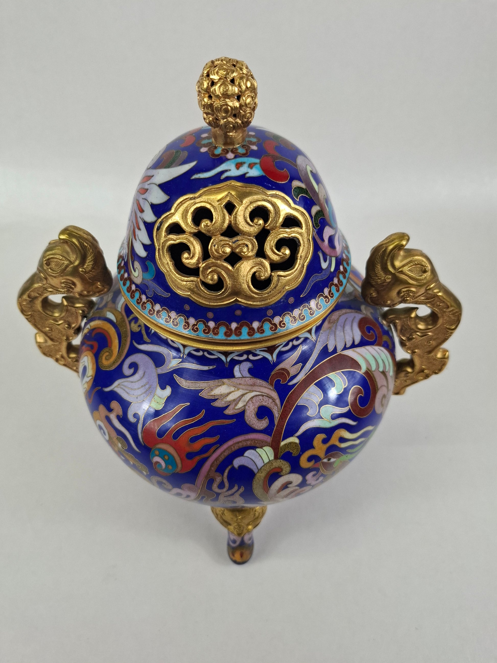 中国景泰蓝三脚香炉,饰以龙凤纹 // 20世纪