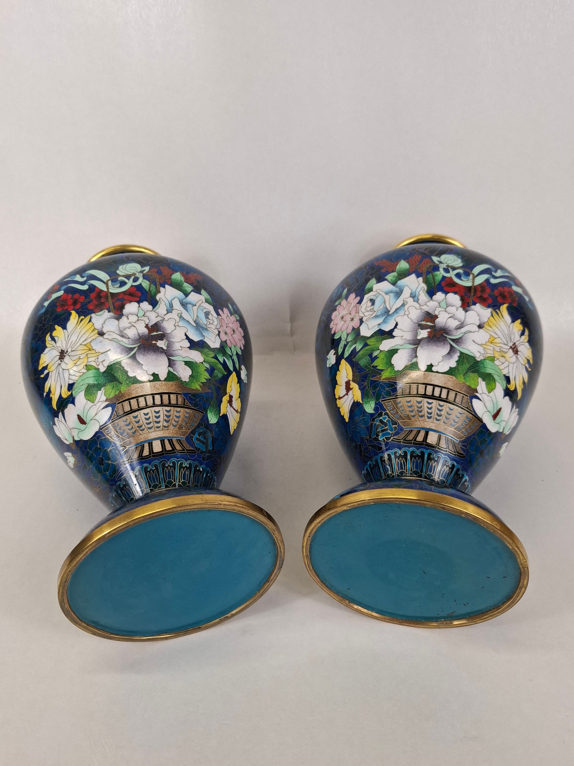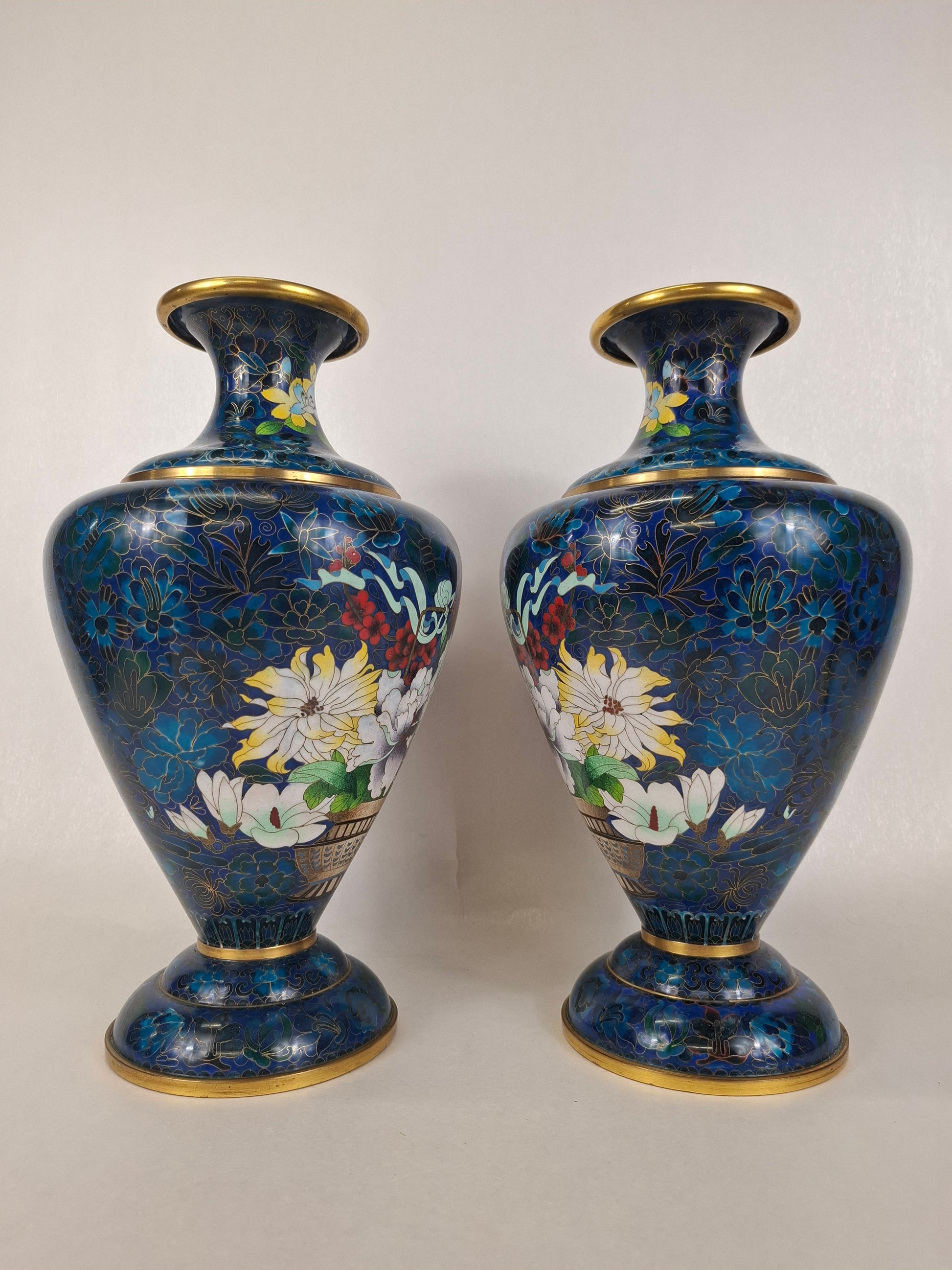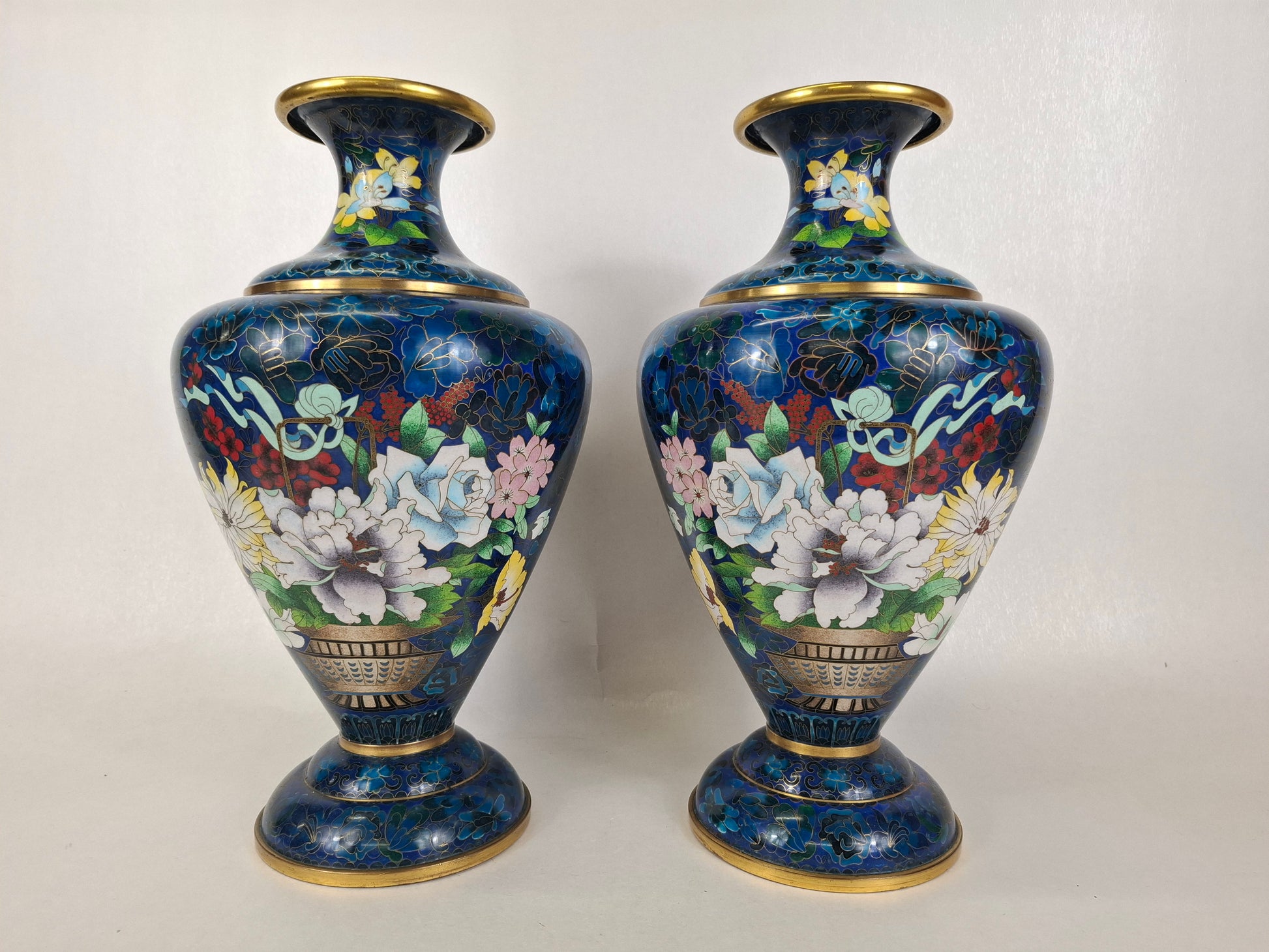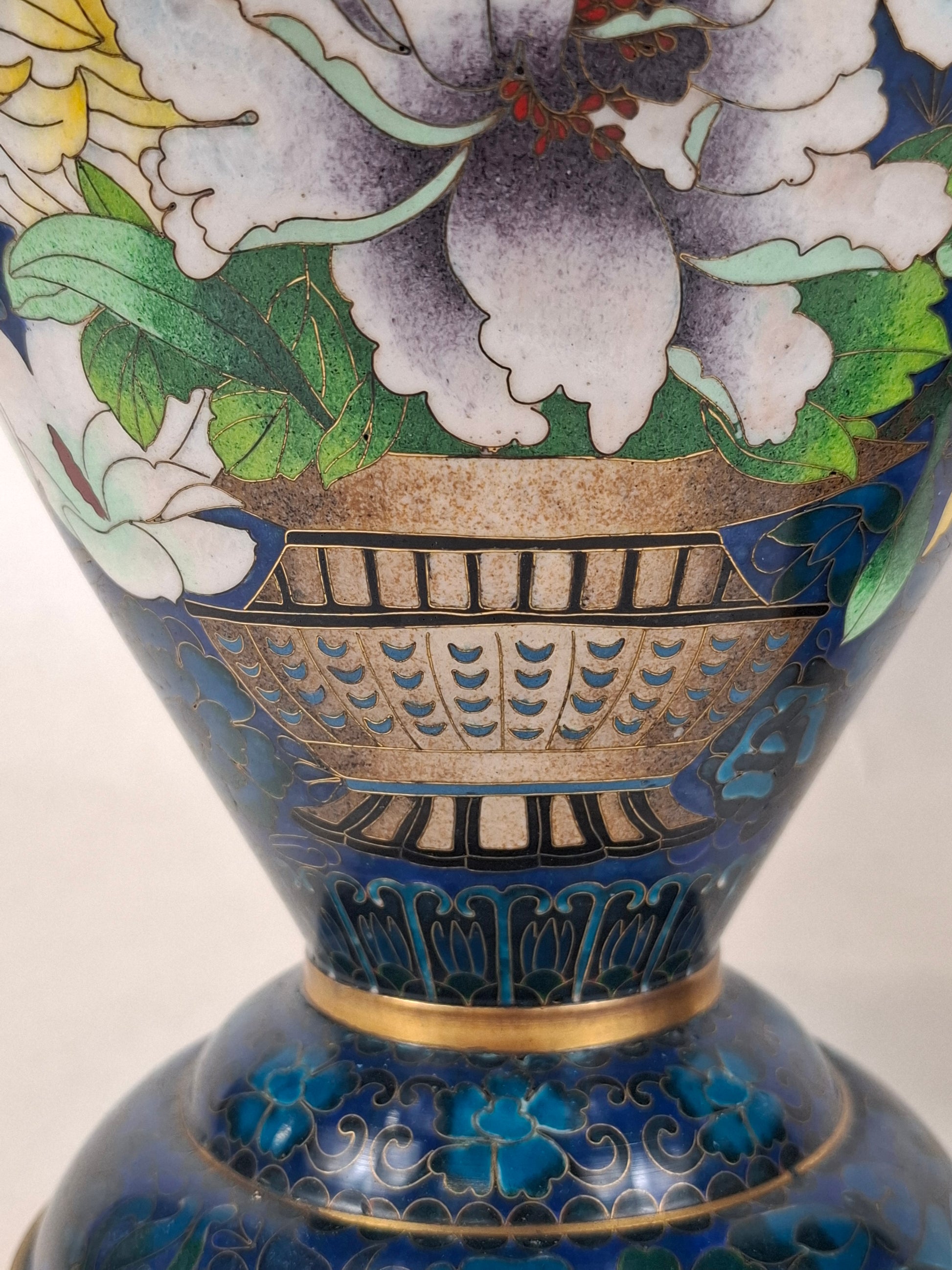 一对饰有花篮图案的大型中国景泰蓝花瓶 // 20世纪