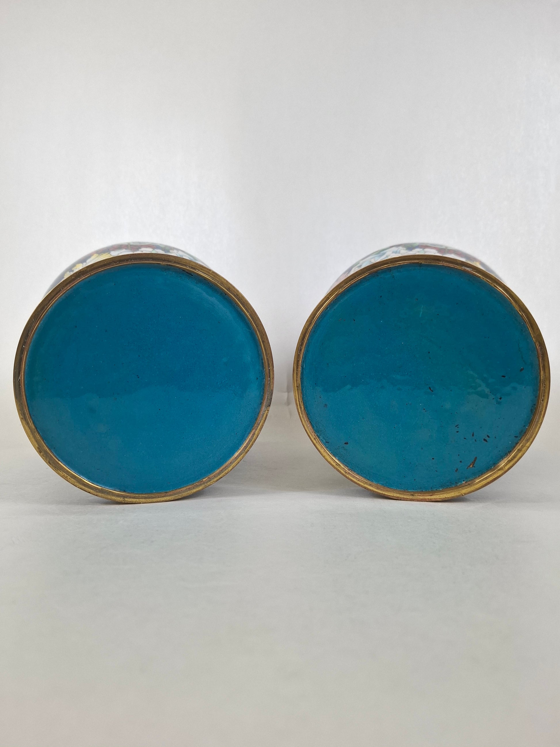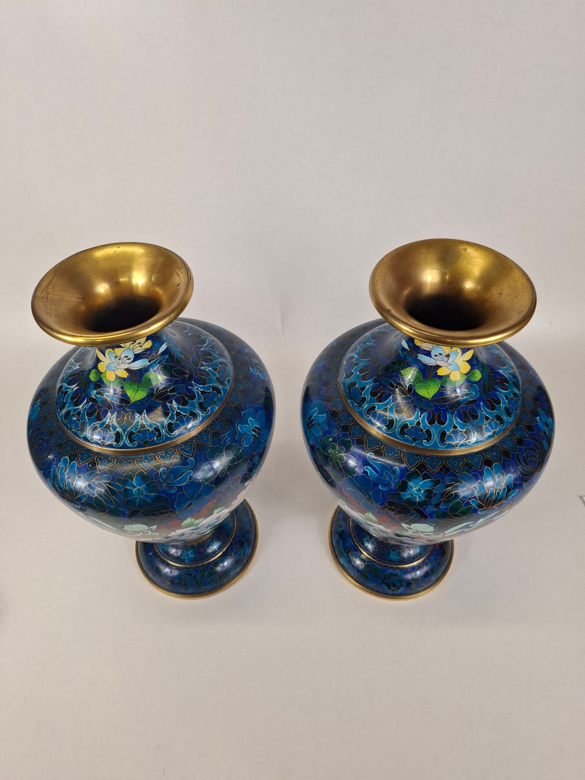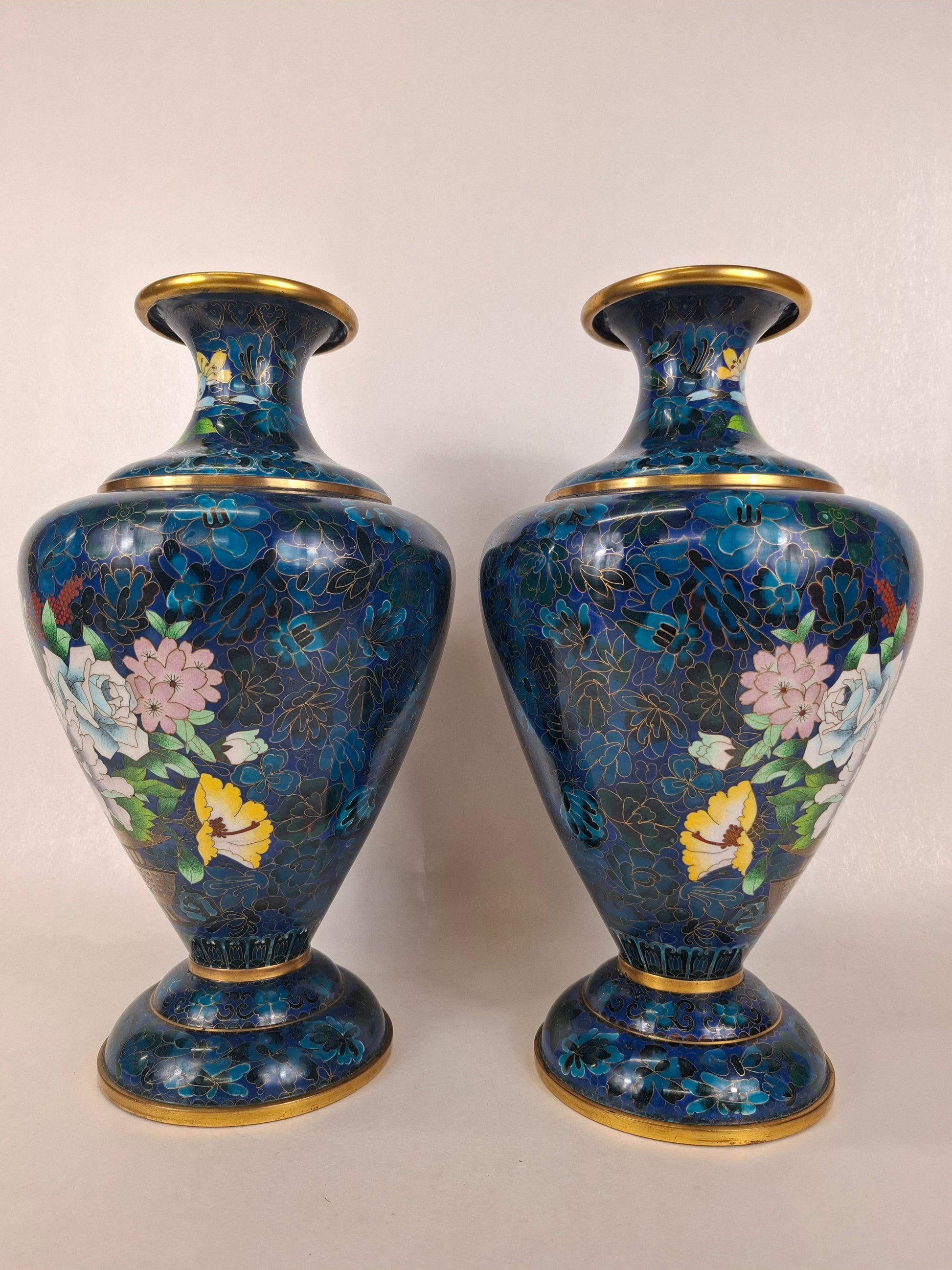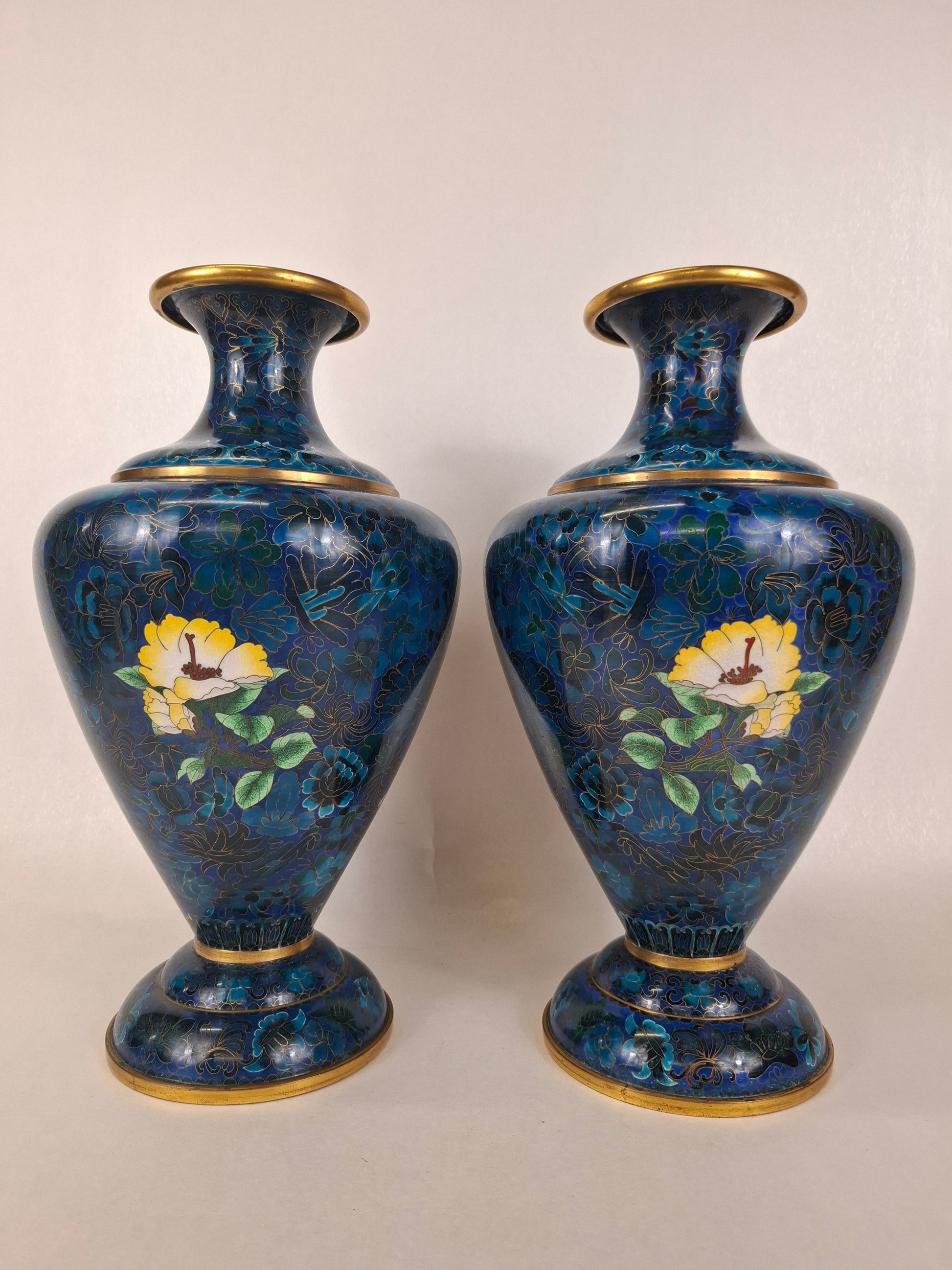 一对饰有花篮图案的大型中国景泰蓝花瓶 // 20世纪